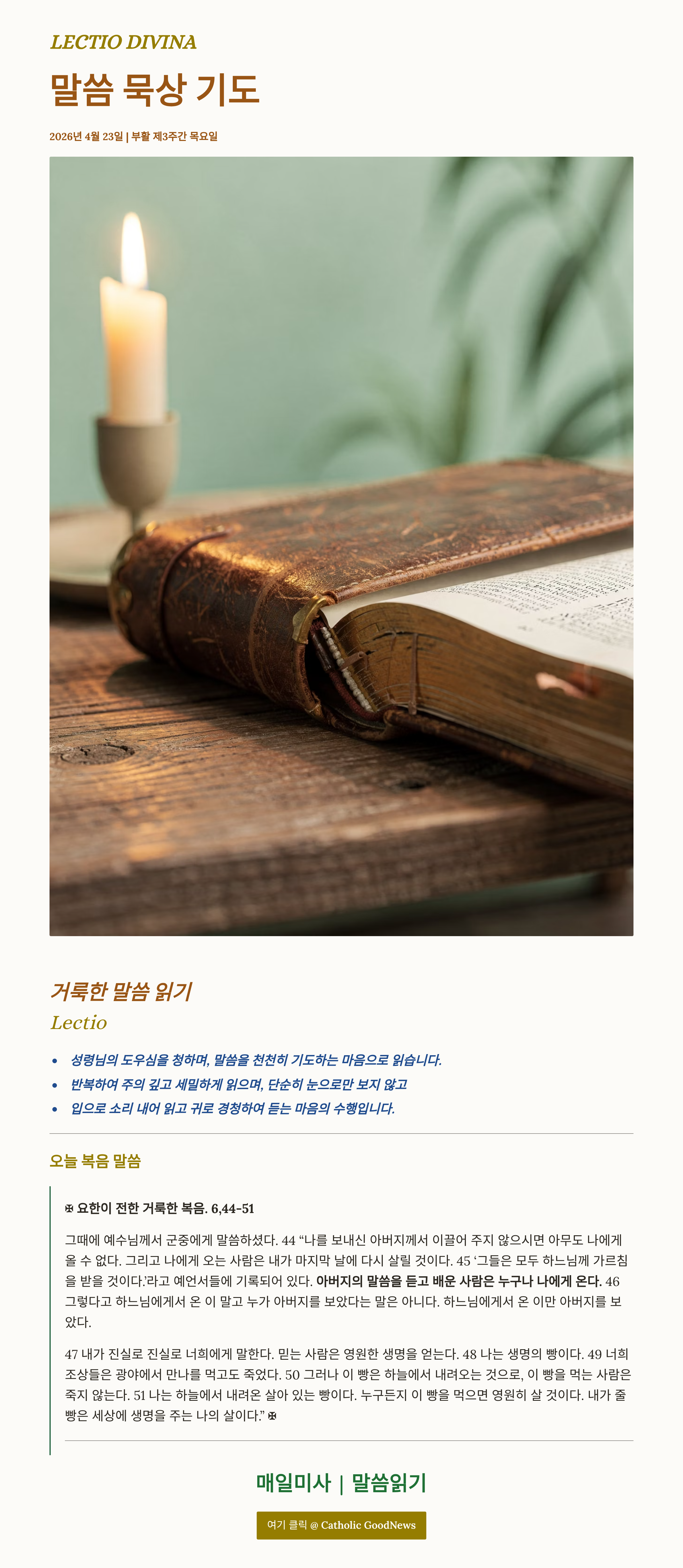 말씀묵상기도 LECTIO DIVINA 20026 04 23 부활 제3주간 목요일