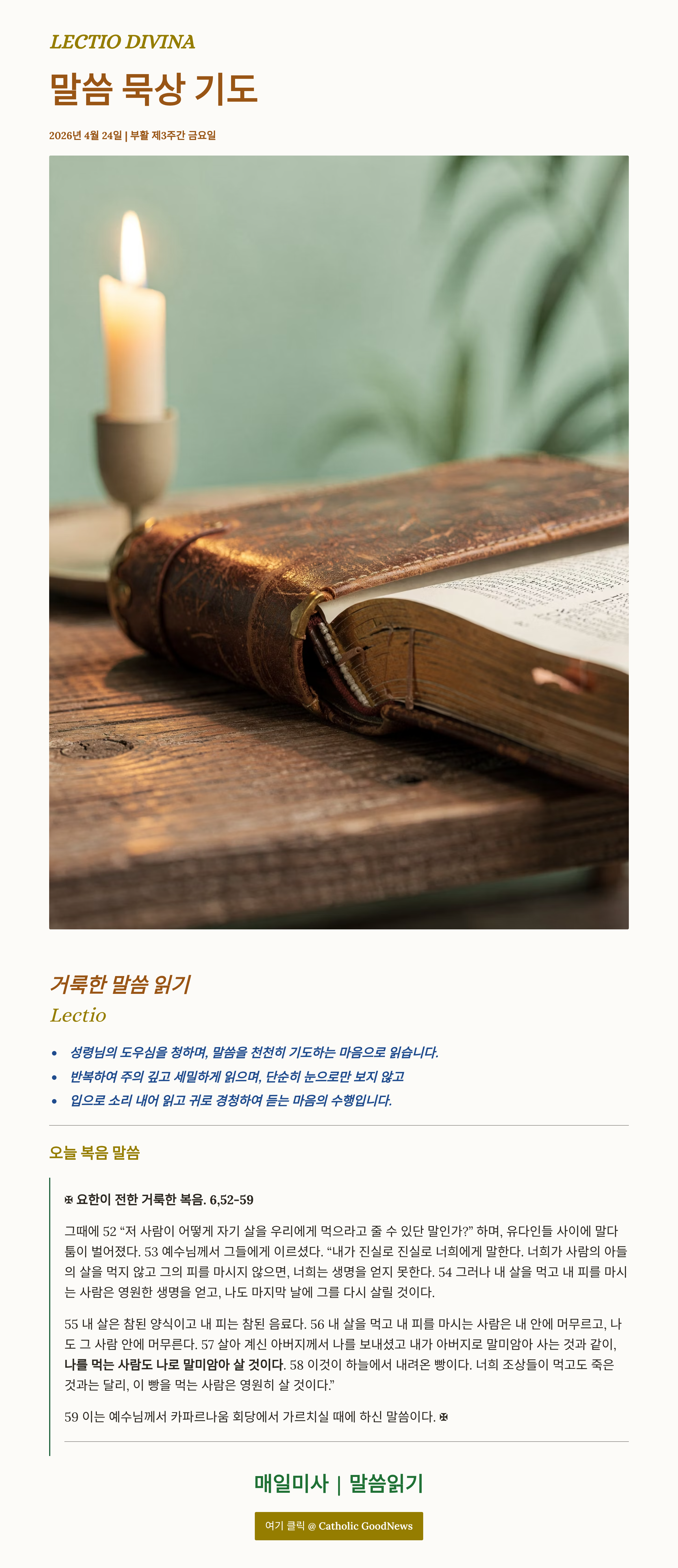 말씀묵상기도 LECTIO DIVINA 20026 04 24 부활 제3주간 금요일