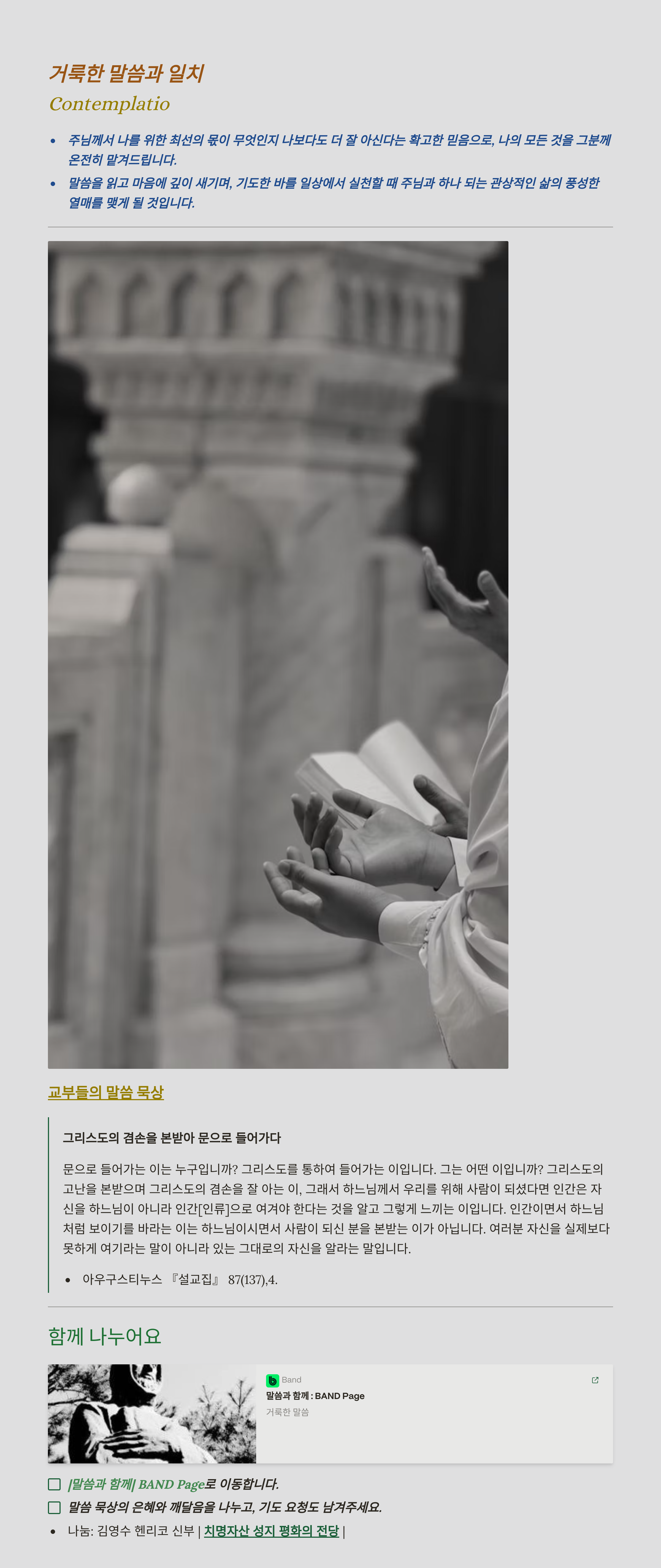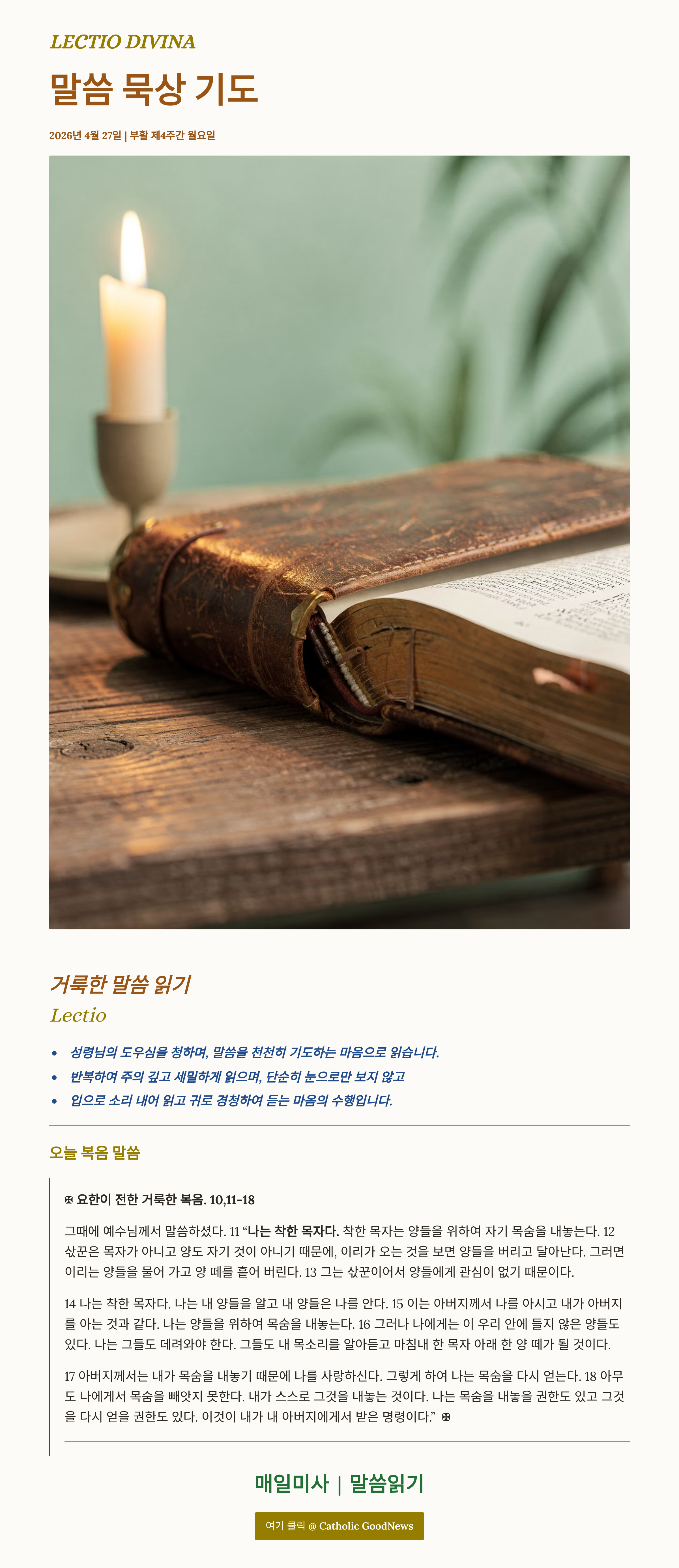 말씀묵상기도 LECTIO DIVINA 20026 04 27 부활 제4주간 월요일