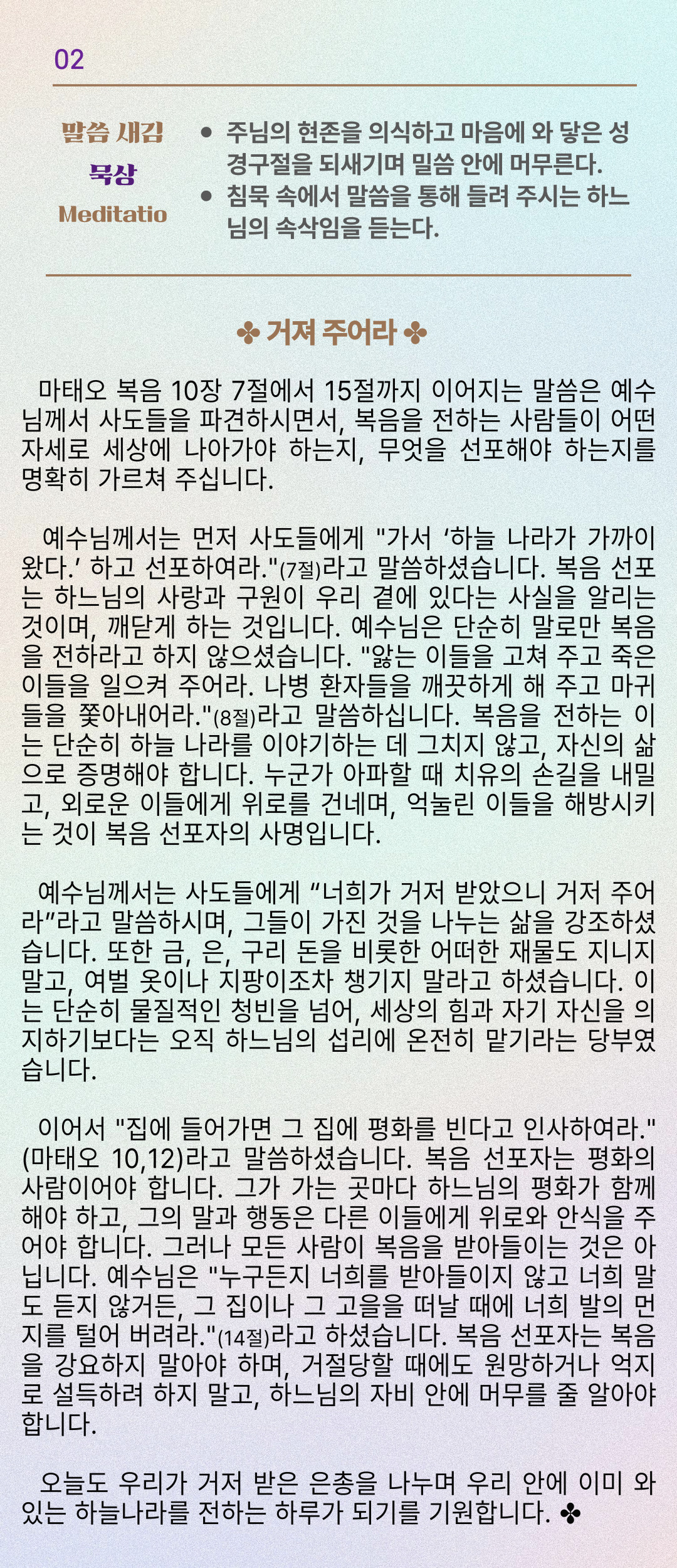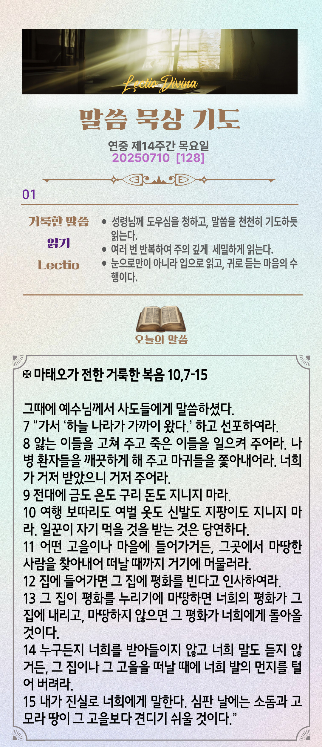 말씀묵상기도 LECTIO DIVINA [128] 20250710 연중 제14주간 목요일