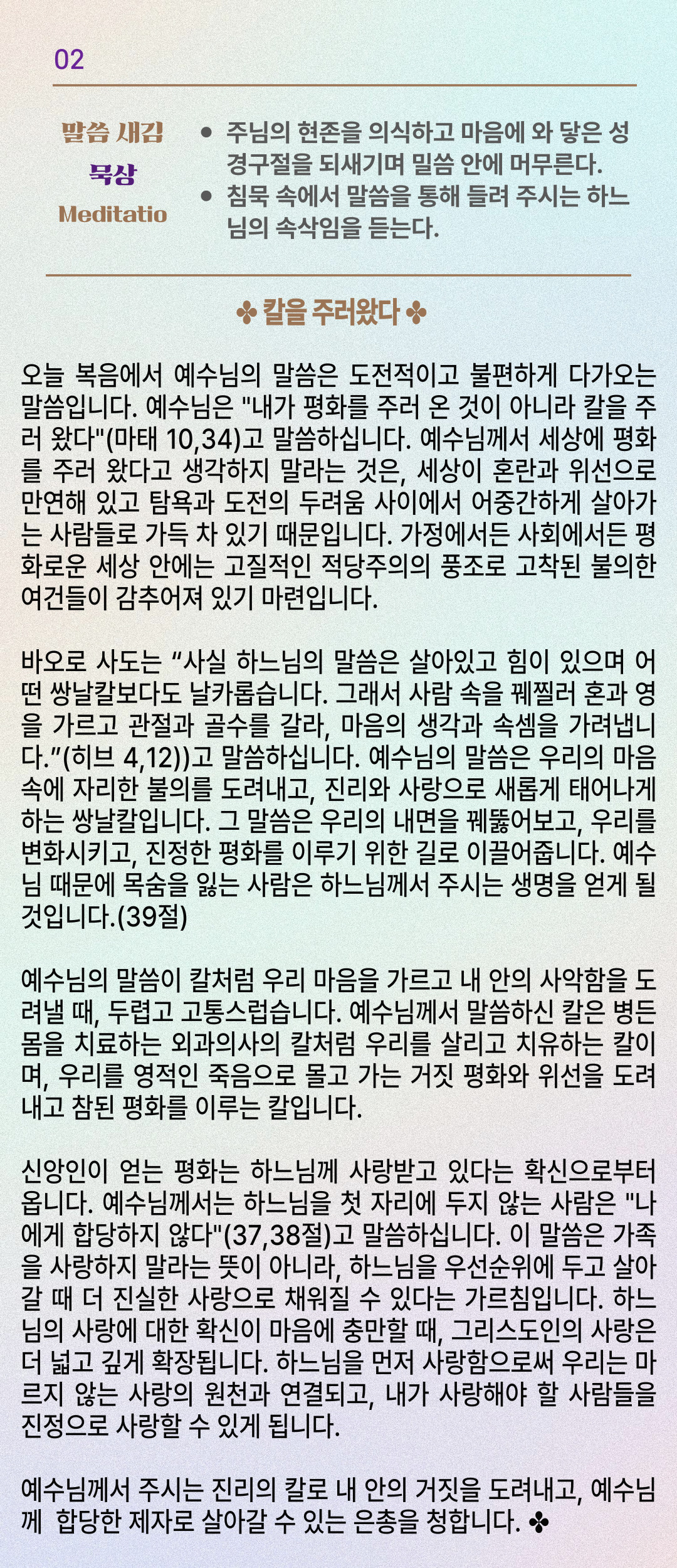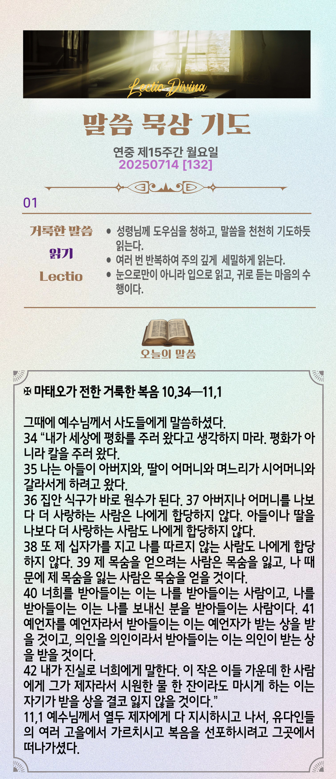말씀묵상기도 LECTIO DIVINA [132] 20250714 연중 제15주간 월요일