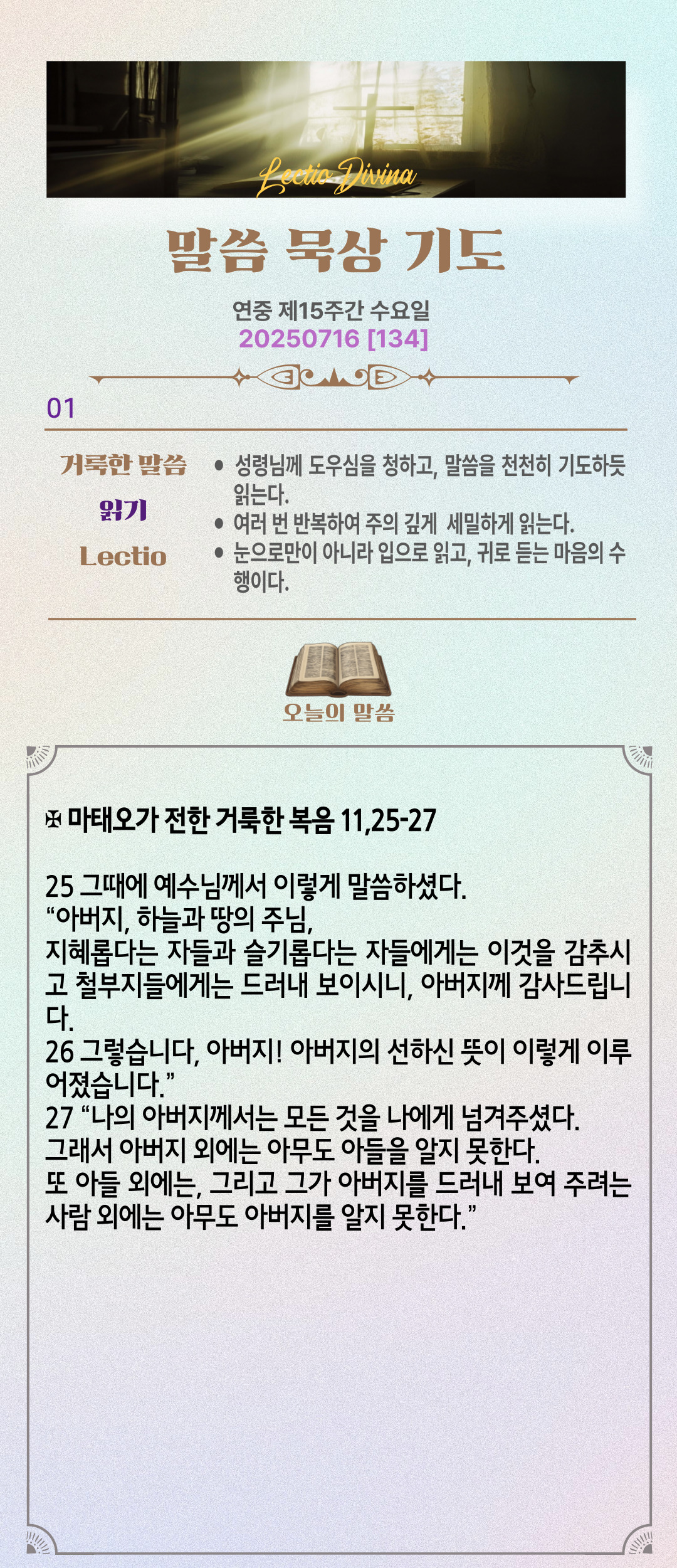 말씀묵상기도 LECTIO DIVINA [134] 20250716 연중 제15주간 수요일