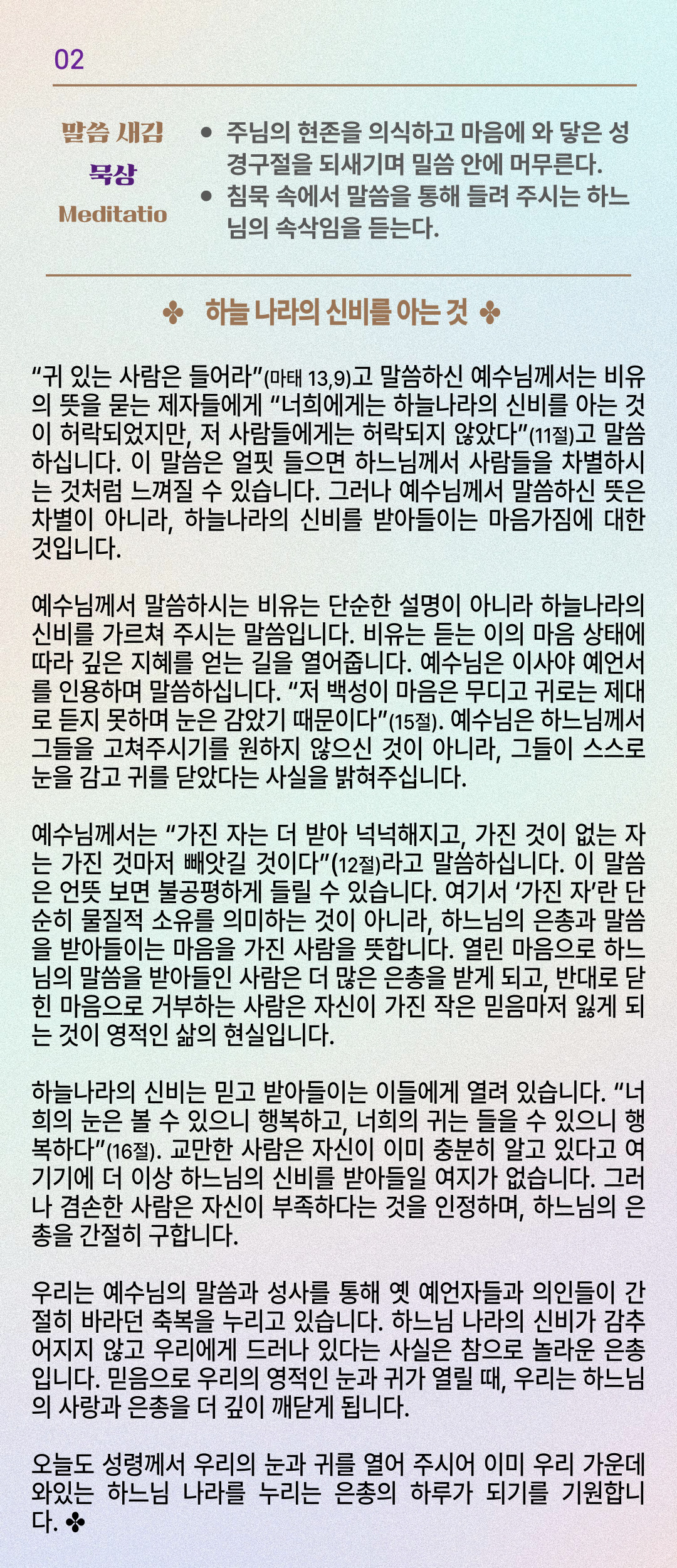 말씀묵상기도 LECTIO DIVINA [142] 연중 제16주간 목요일 20250724