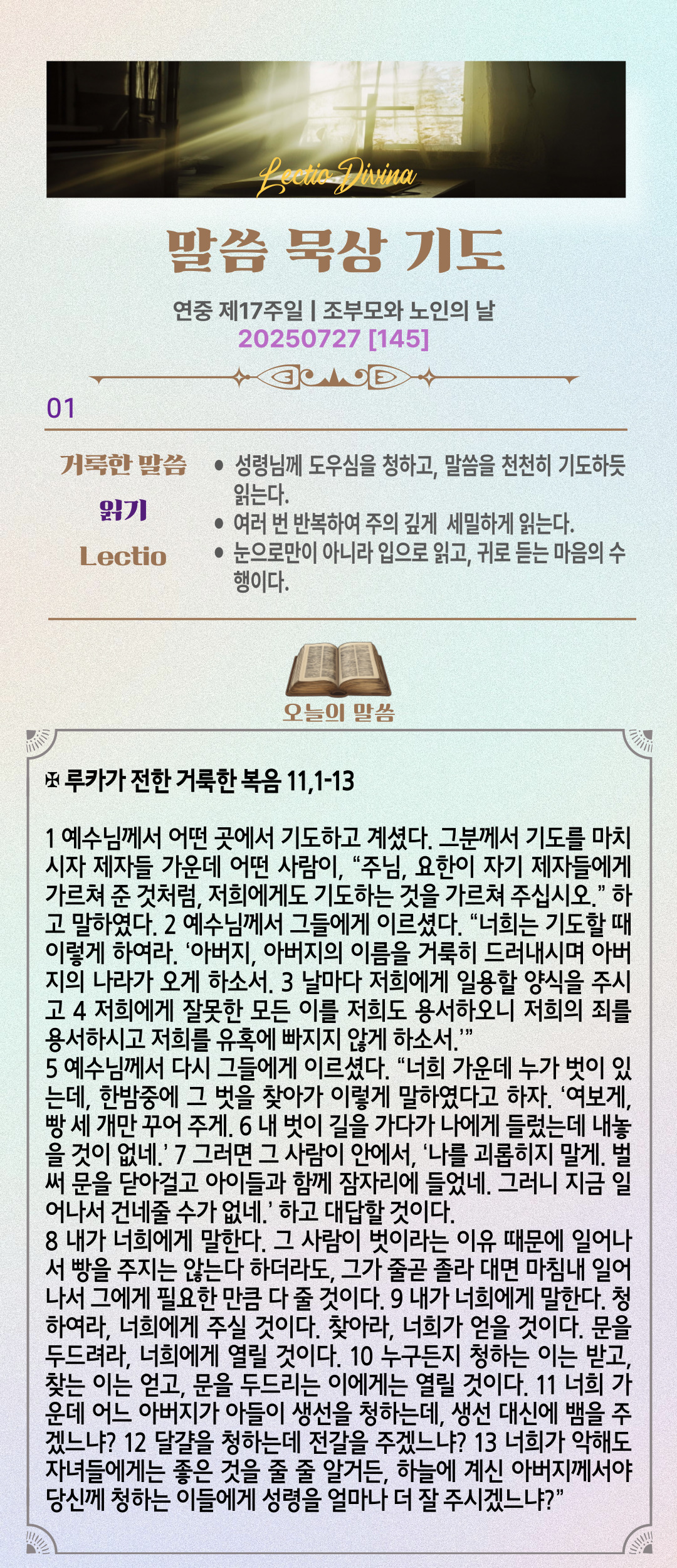 말씀묵상기도 LECTIO DIVINA [145] 20250727 연중 제17주일