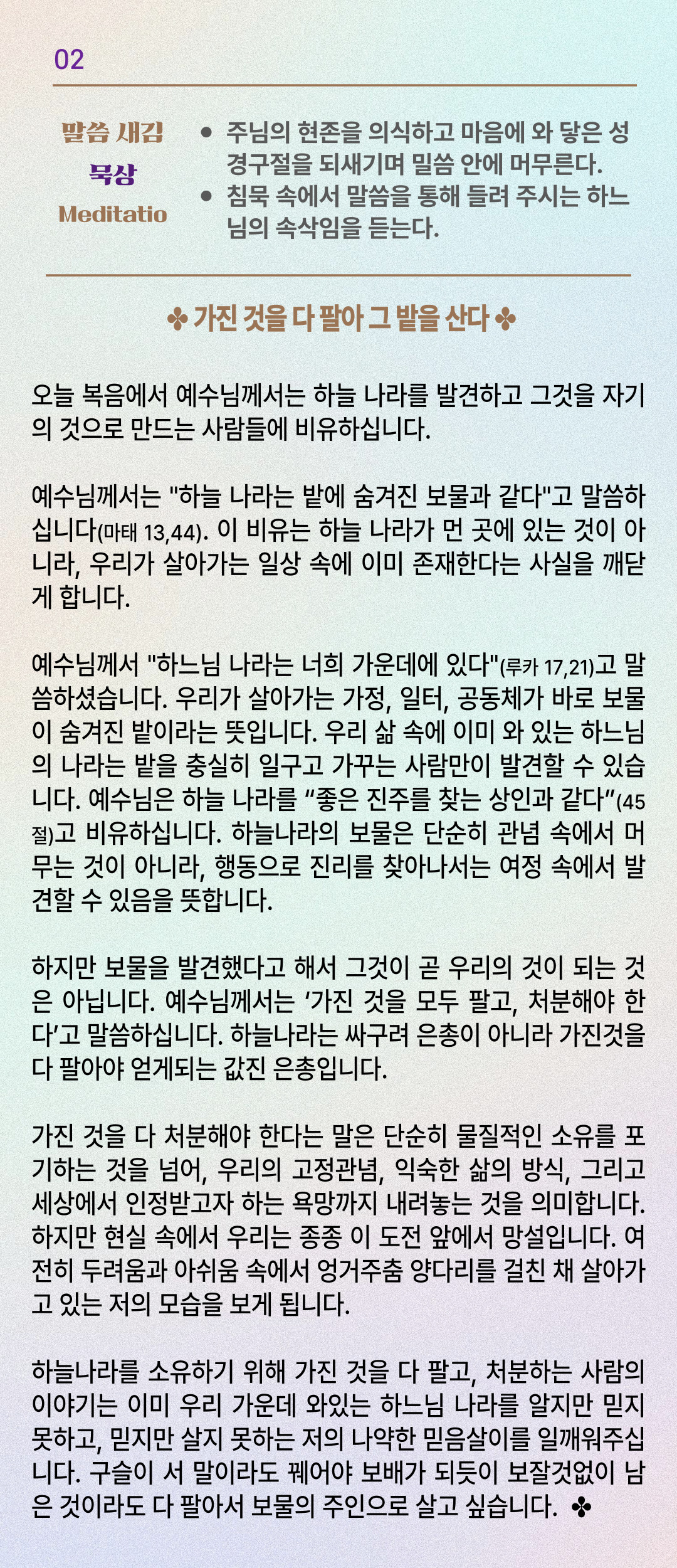 말씀묵상기도 LECTIO DIVINA [148] 20250730 연중 제17주간 수요일