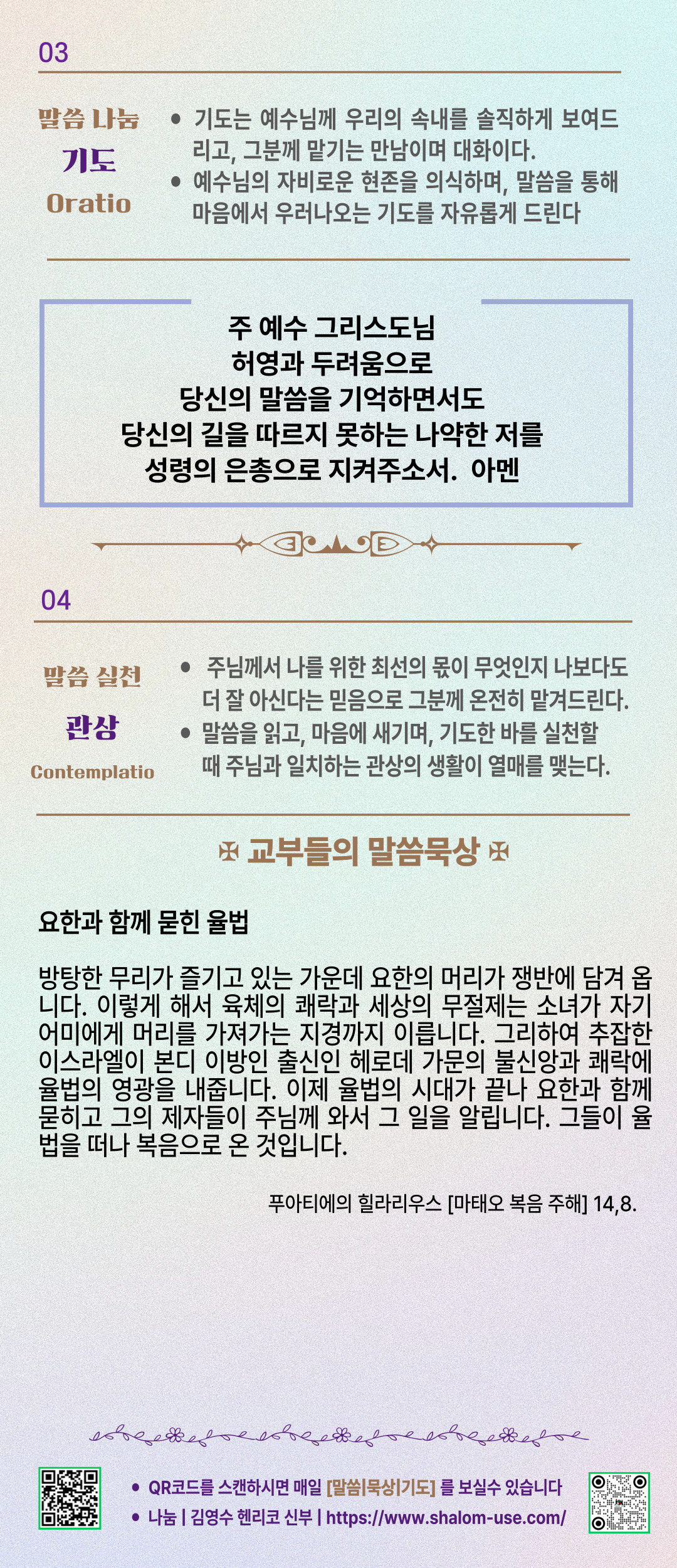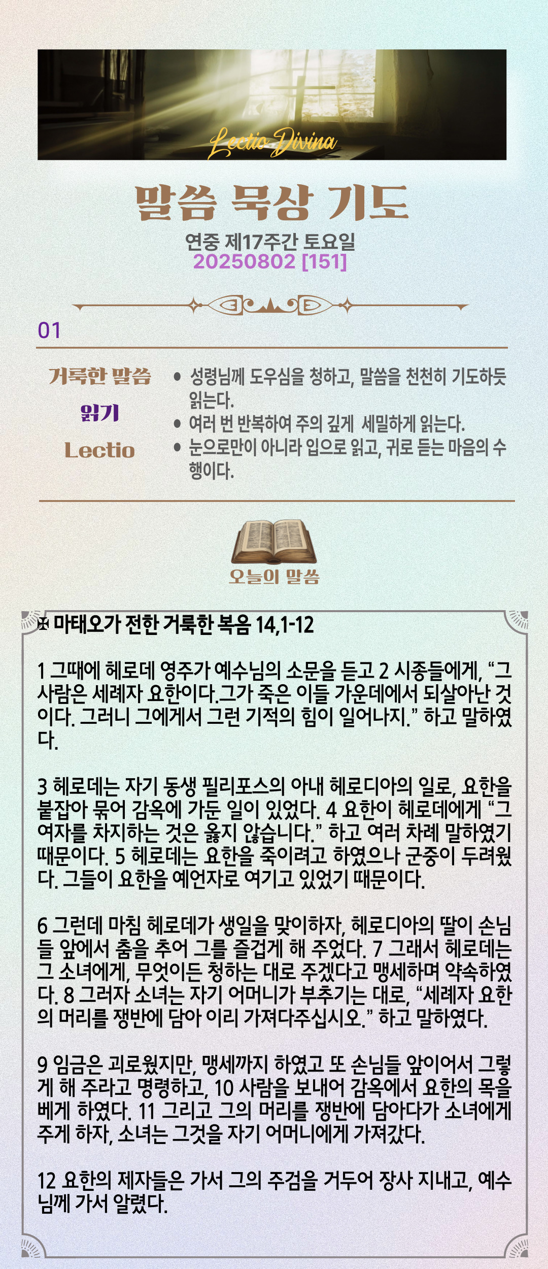말씀묵상기도 LECTIO DIVINA [151] 20250802 연중 제17주간 토요일