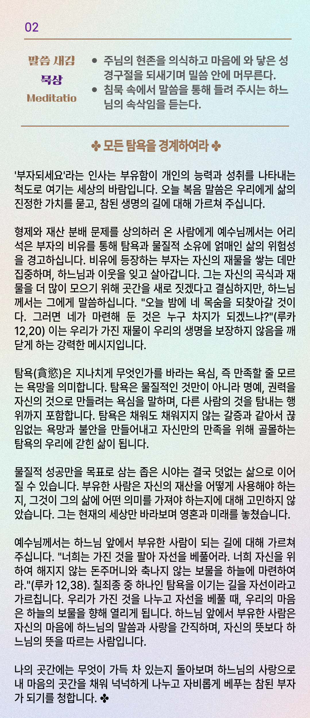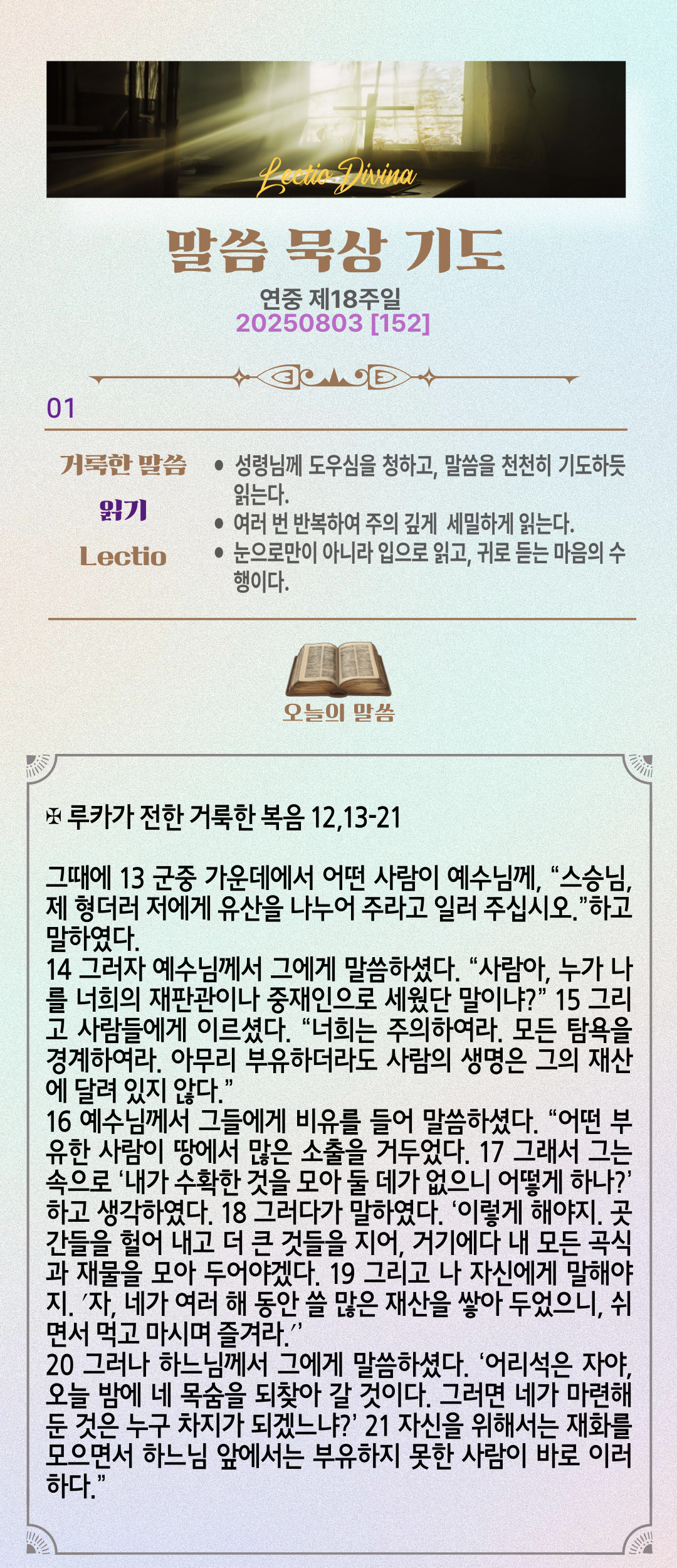 말씀묵상기도 LECTIO DIVINA [152] 20250803 연중 제18주일