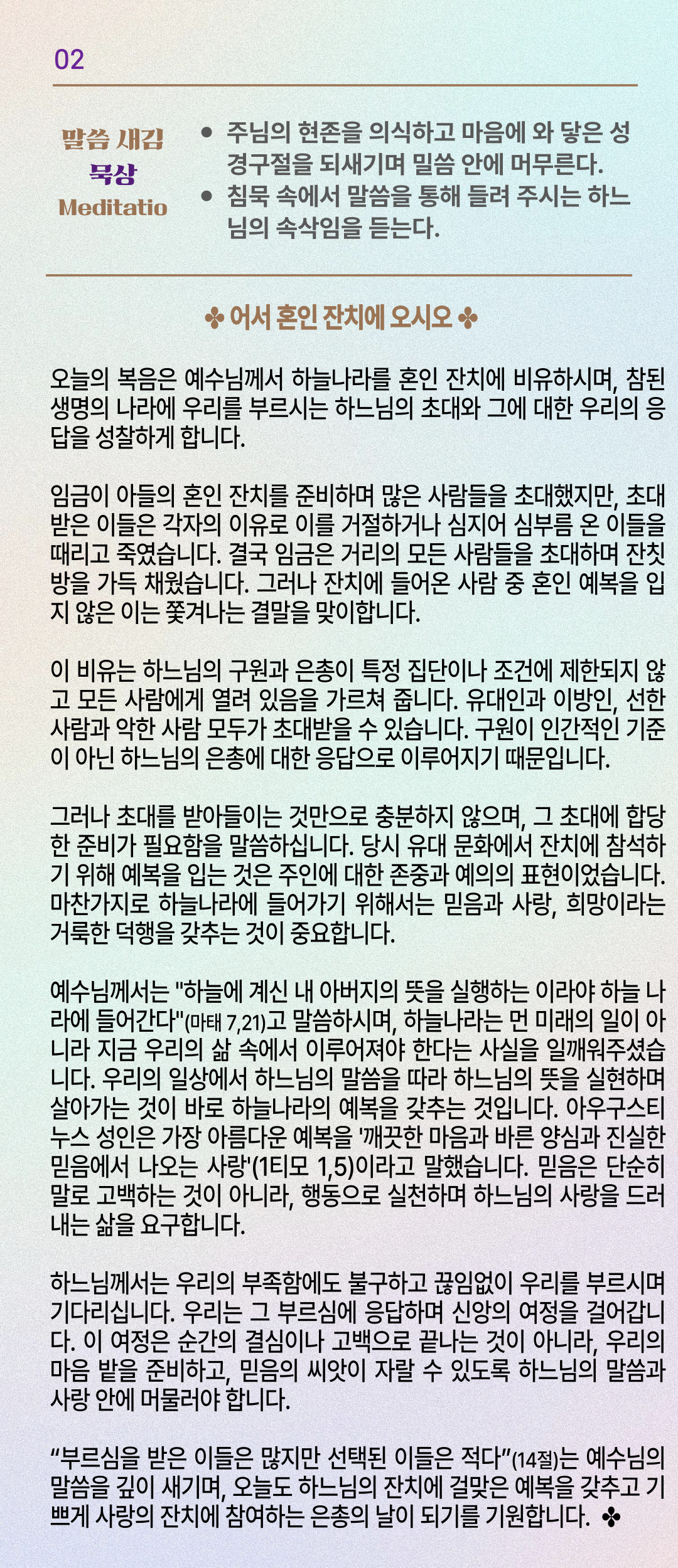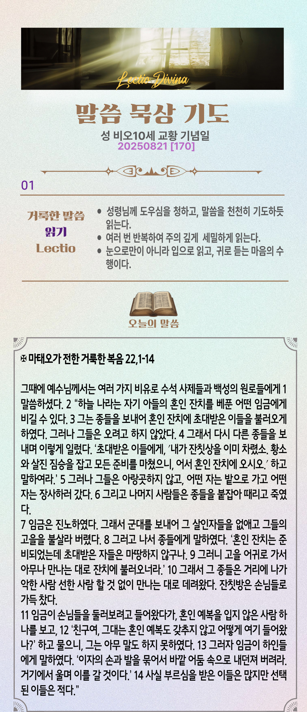 말씀묵상기도 LECTIO DIVINA [170] 20250821 성 비오10세 교황 기념일