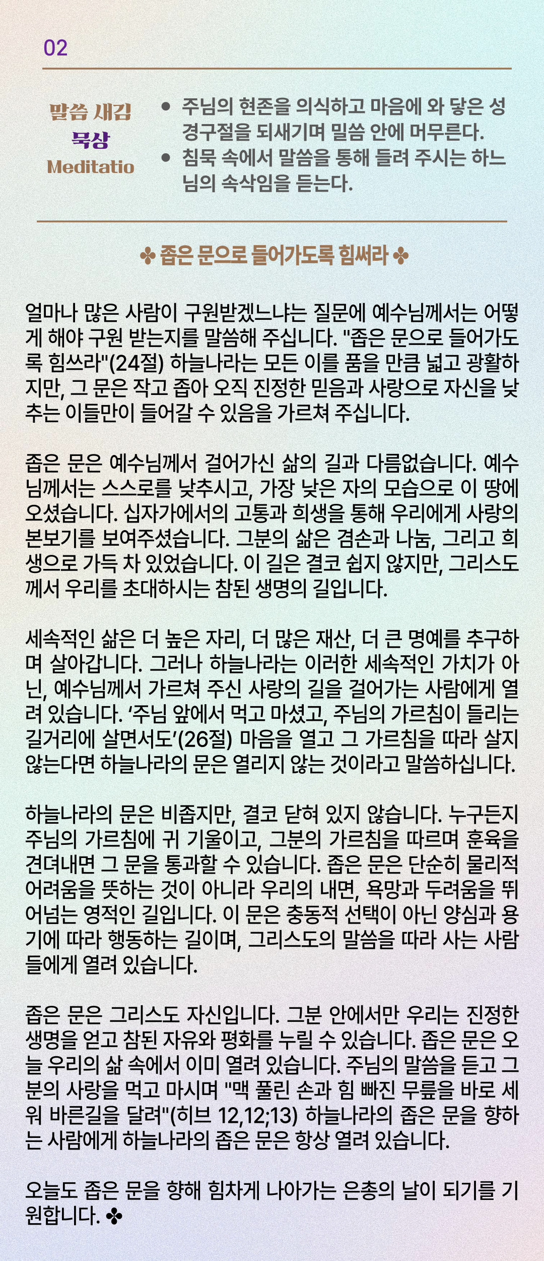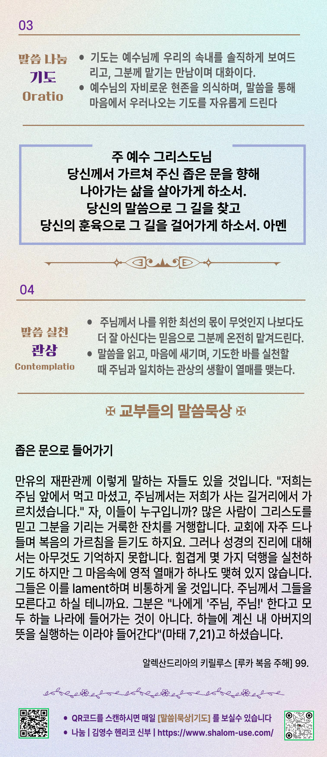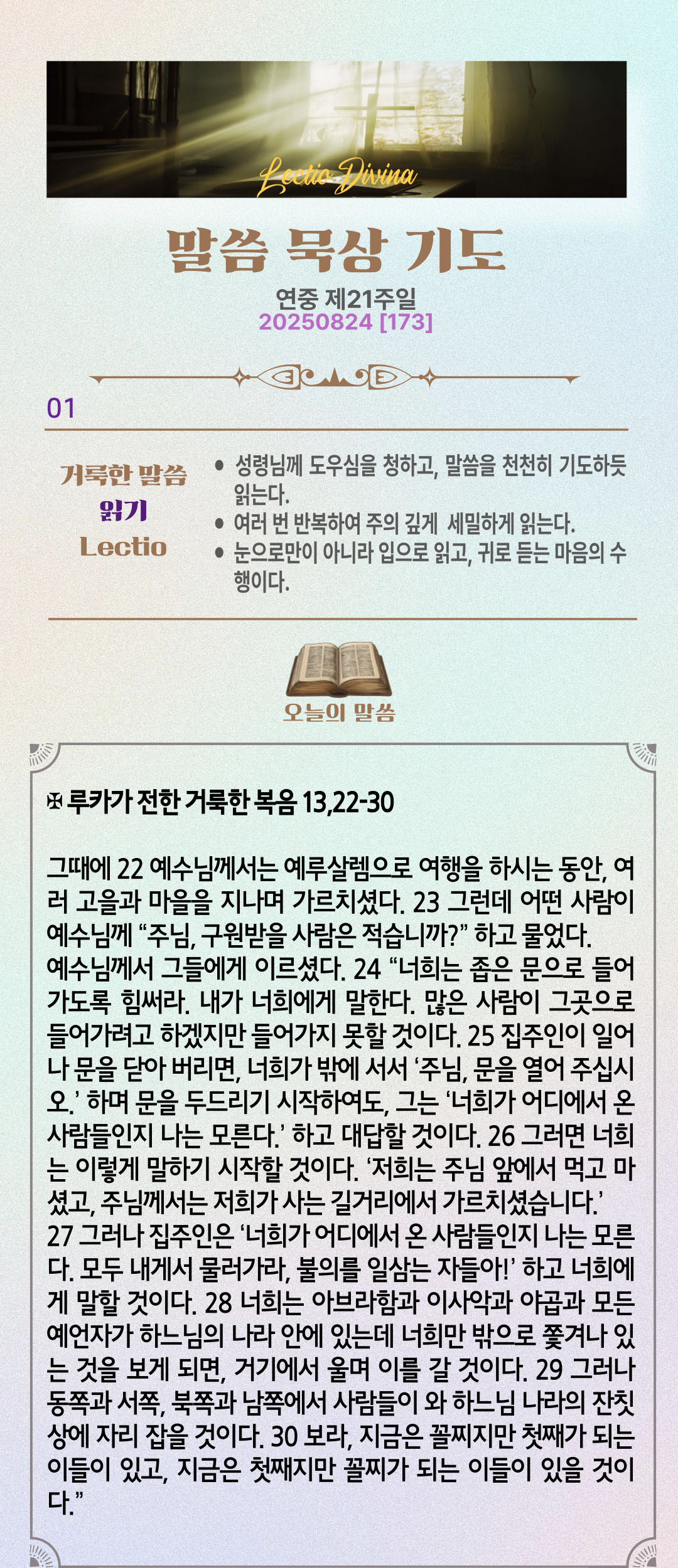 말씀묵상기도 LECTIO DIVINA [173] 20250824 연중 제21주일
