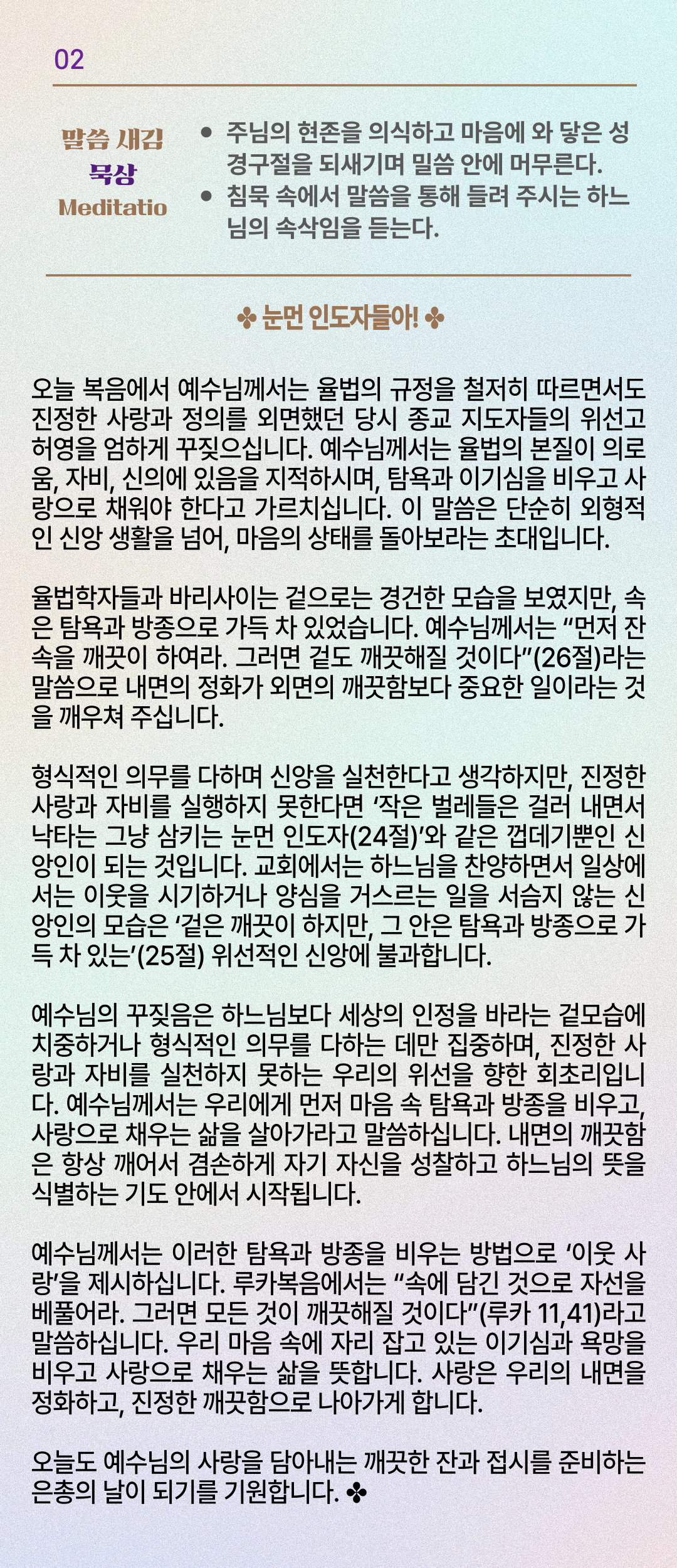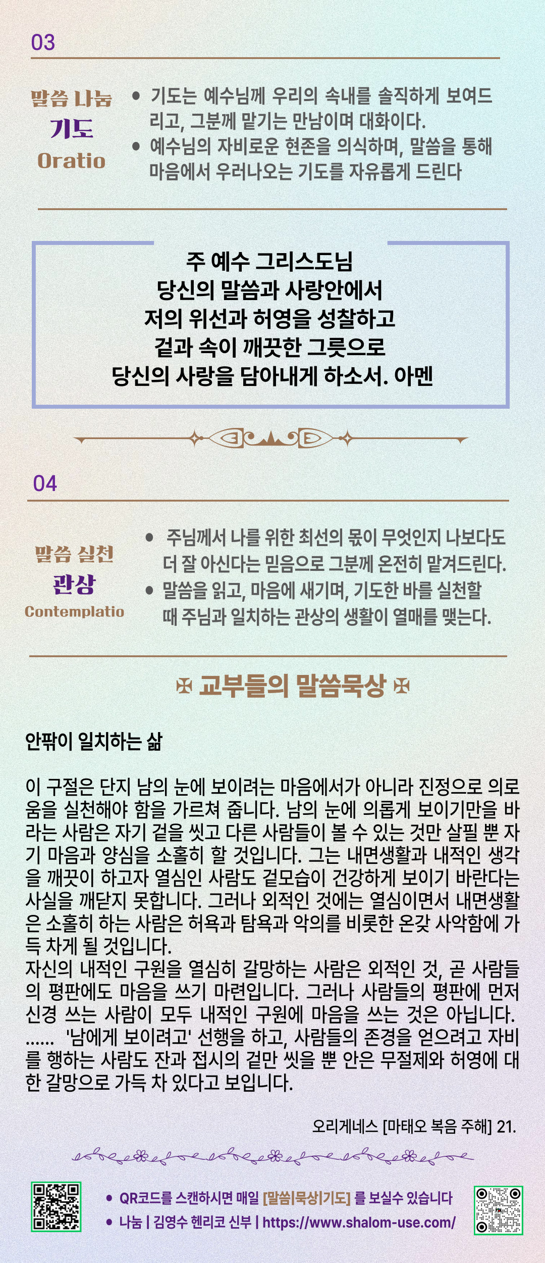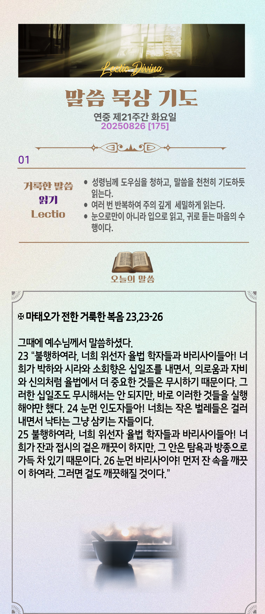 말씀묵상기도 LECTIO DIVINA [175] 20250826 연중 제21주간 화요일