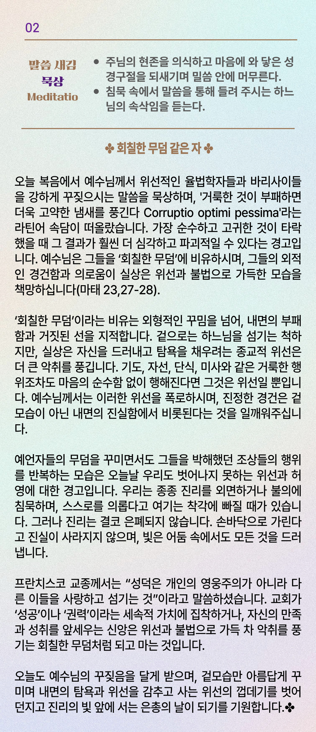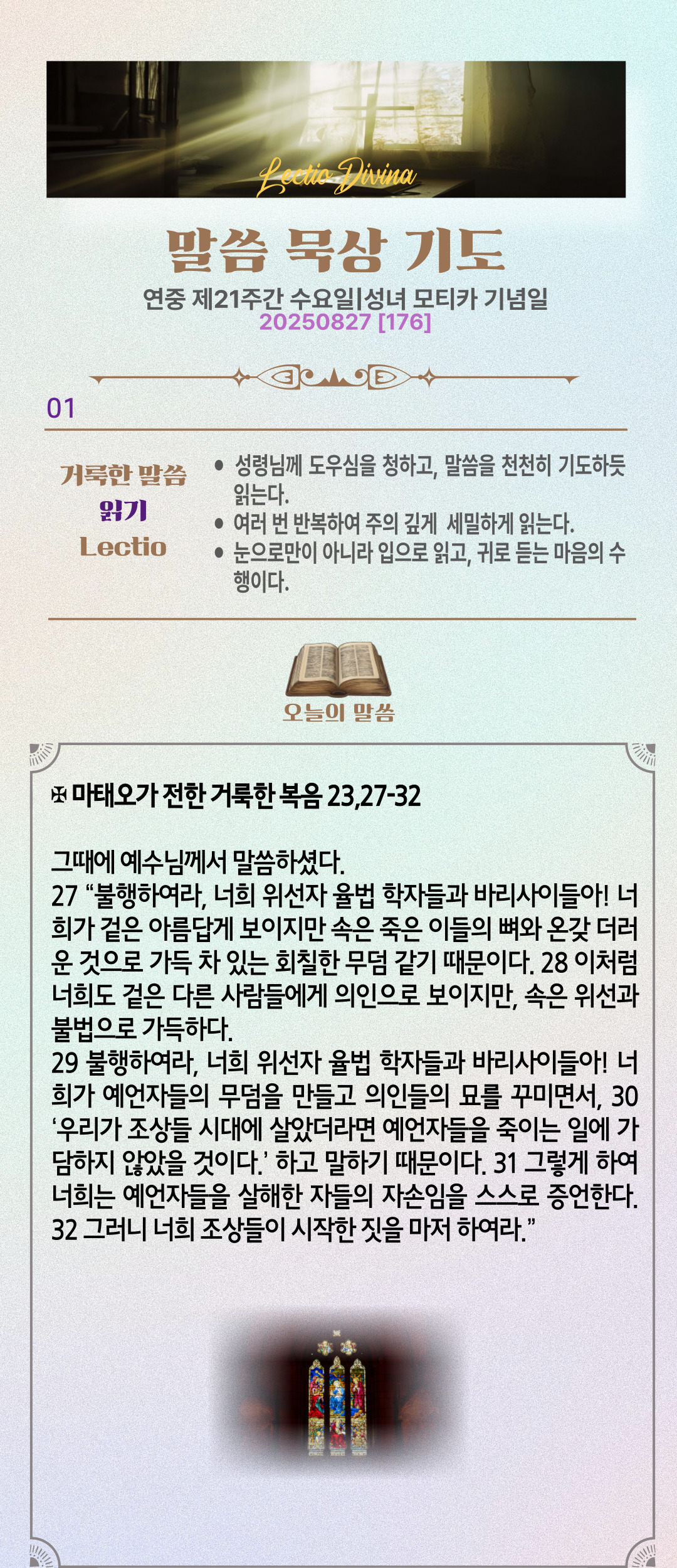 말씀묵상기도 LECTIO DIVINA [176] 20250827 연중 제21주간 수요일 | 성녀 모니카 기념일