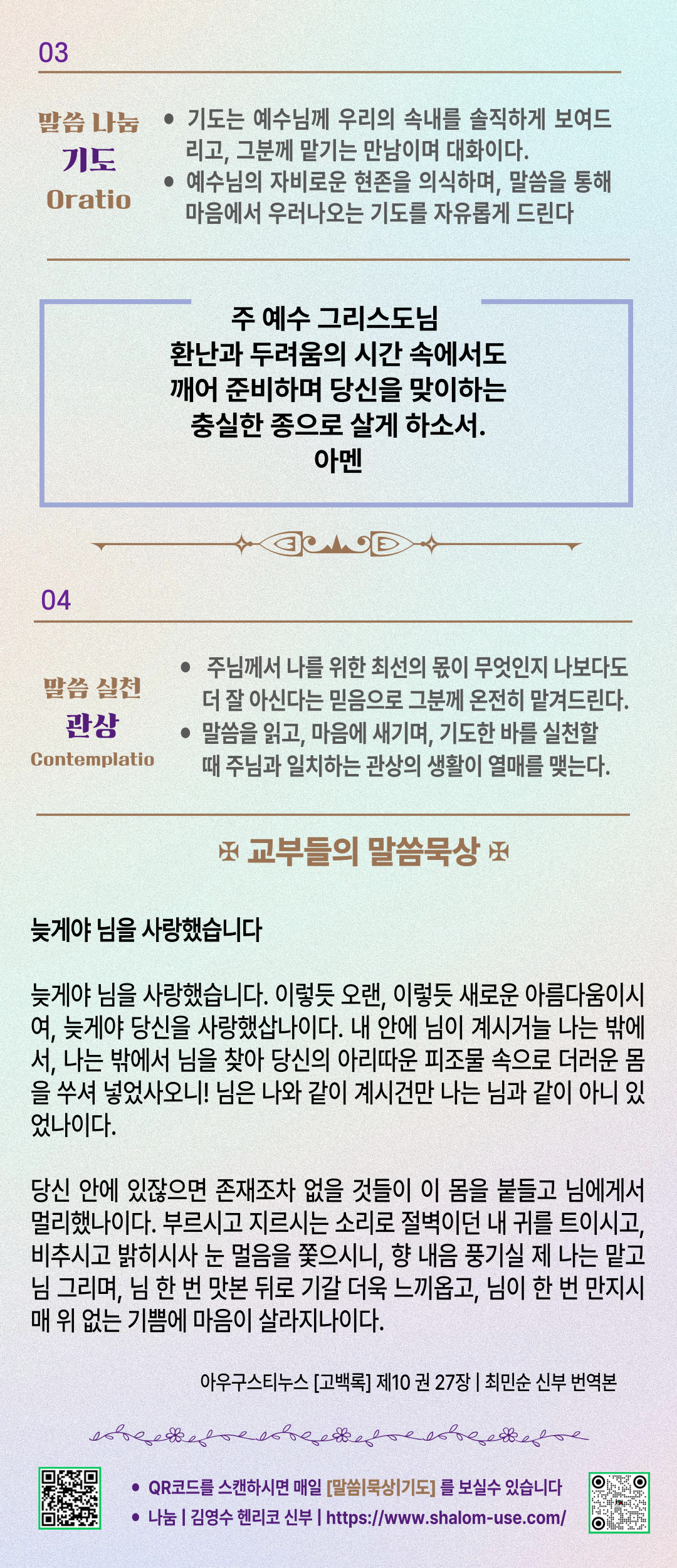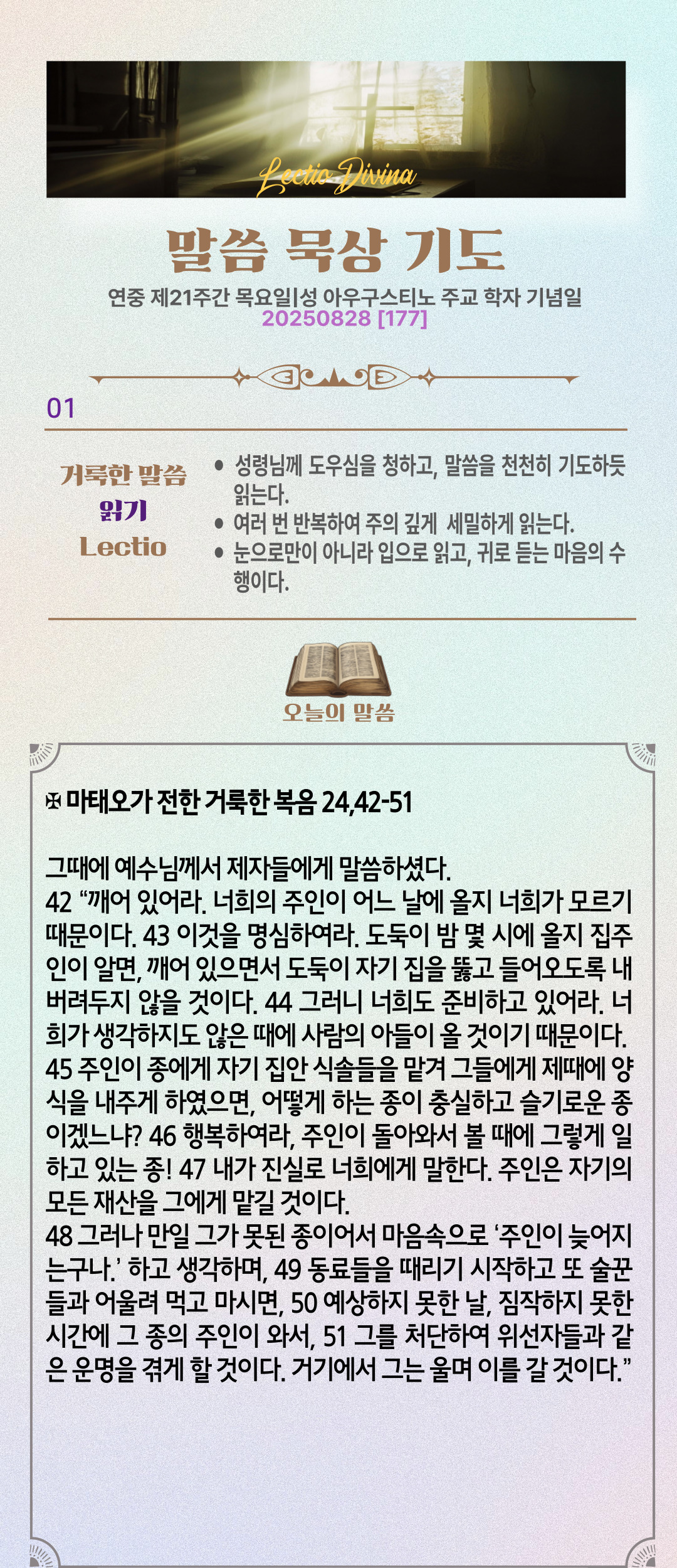 말씀묵상기도 LECTIO DIVINA [177] 20250828 연중 제 21주간 목요일|성 아우구스티노 주교 학자 기념일