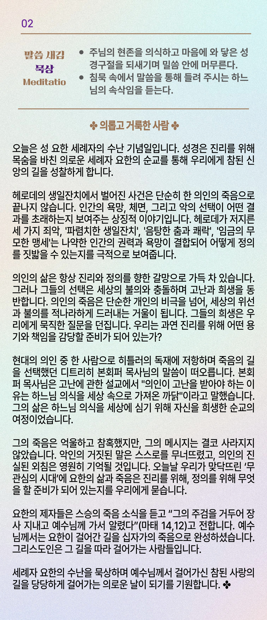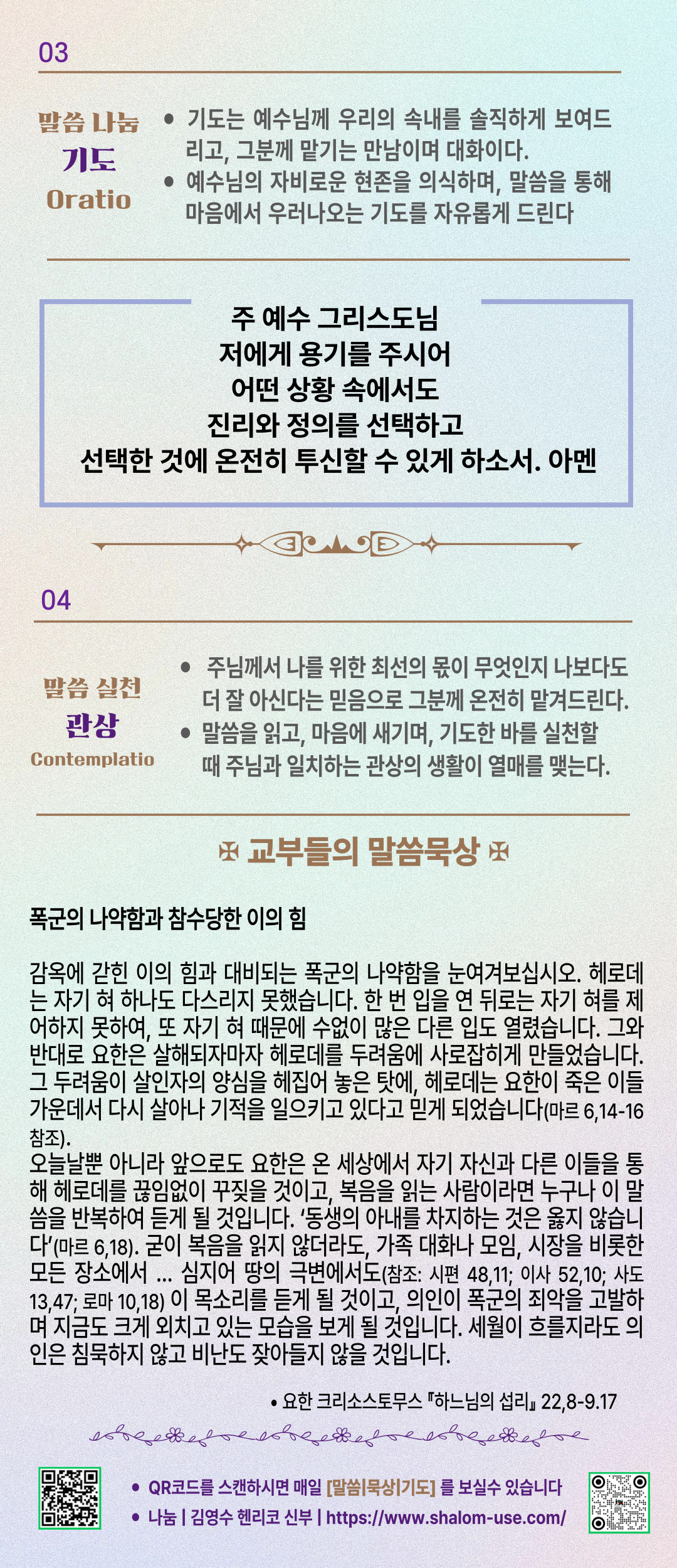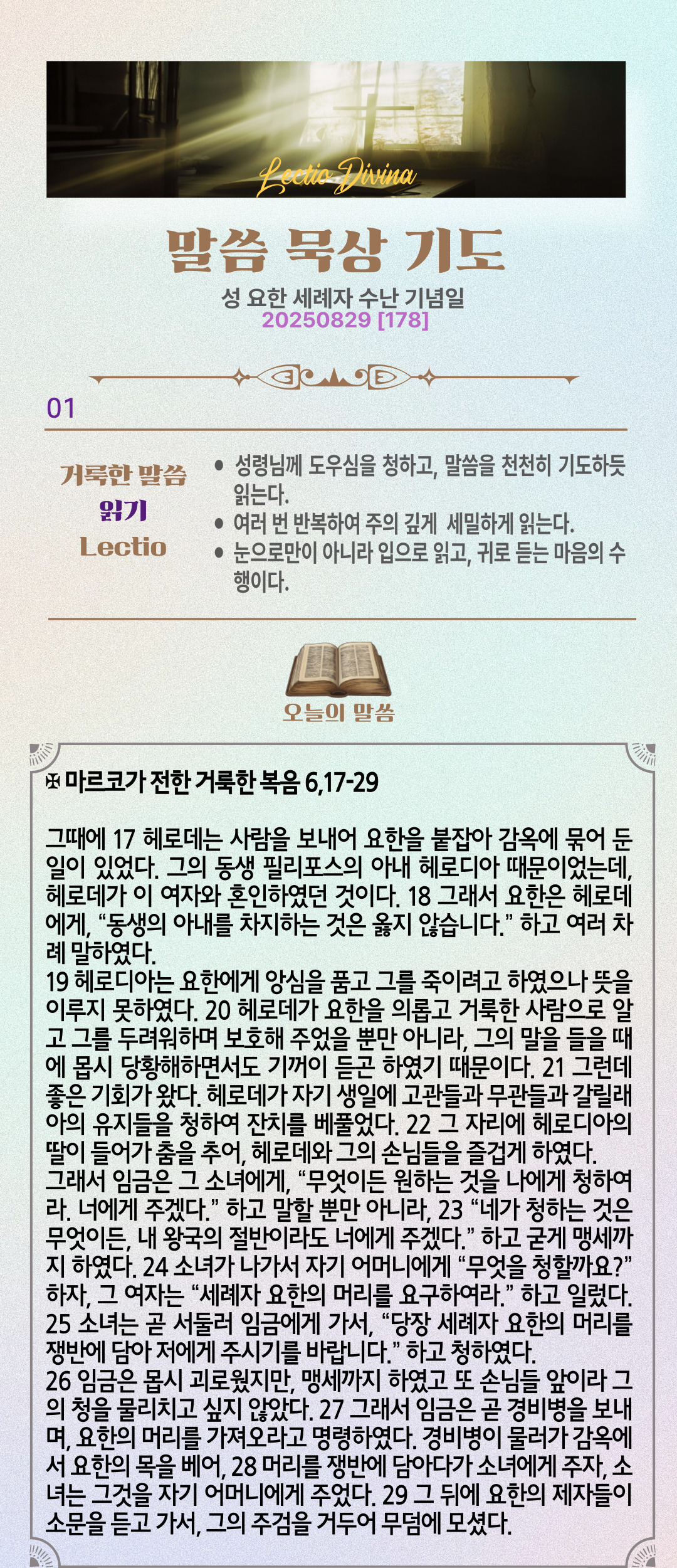 말씀묵상기도 LECTIO DIVINA [178] 20250829 성 요한 세례자 수난 기념일