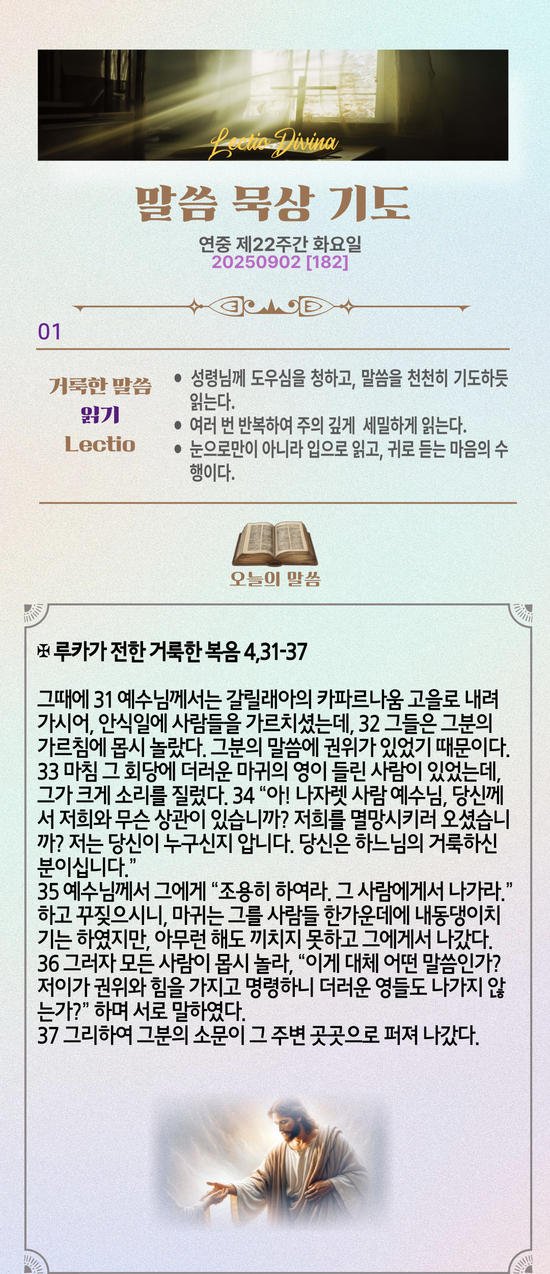 말씀묵상기도 LECTIO DIVINA [182] 20250902 연중 제22주간 화요일