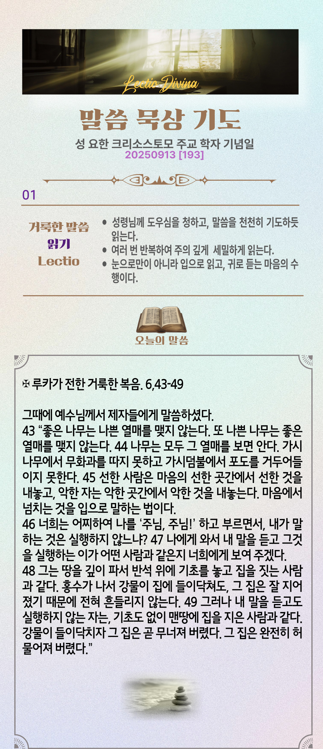 말씀묵상기도 LECTIO DIVINA [193] 20250913 성 요한 크리소스토모 주교학자 기념일