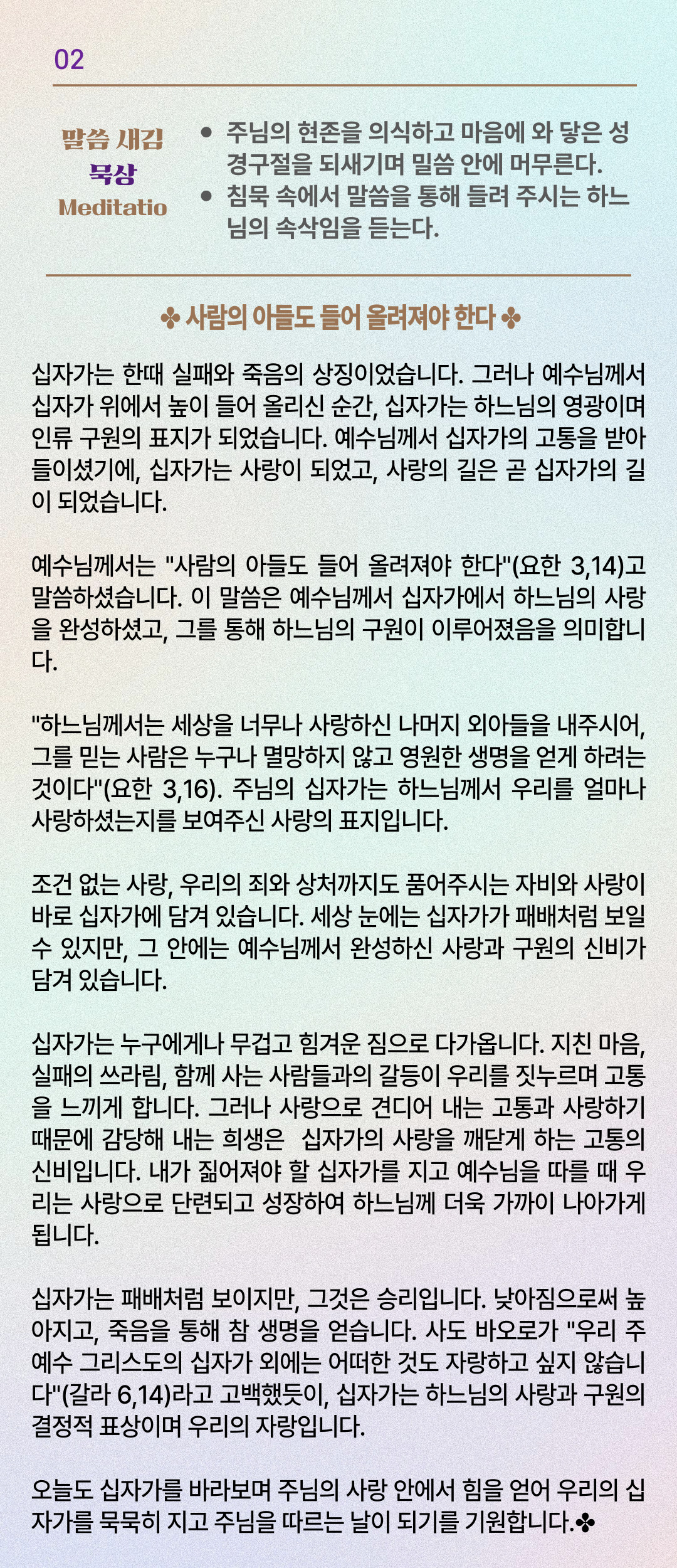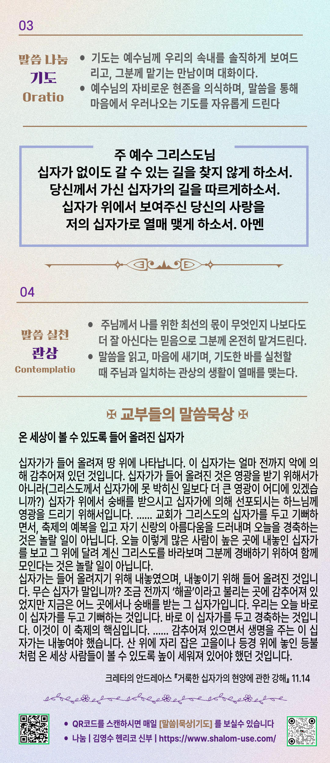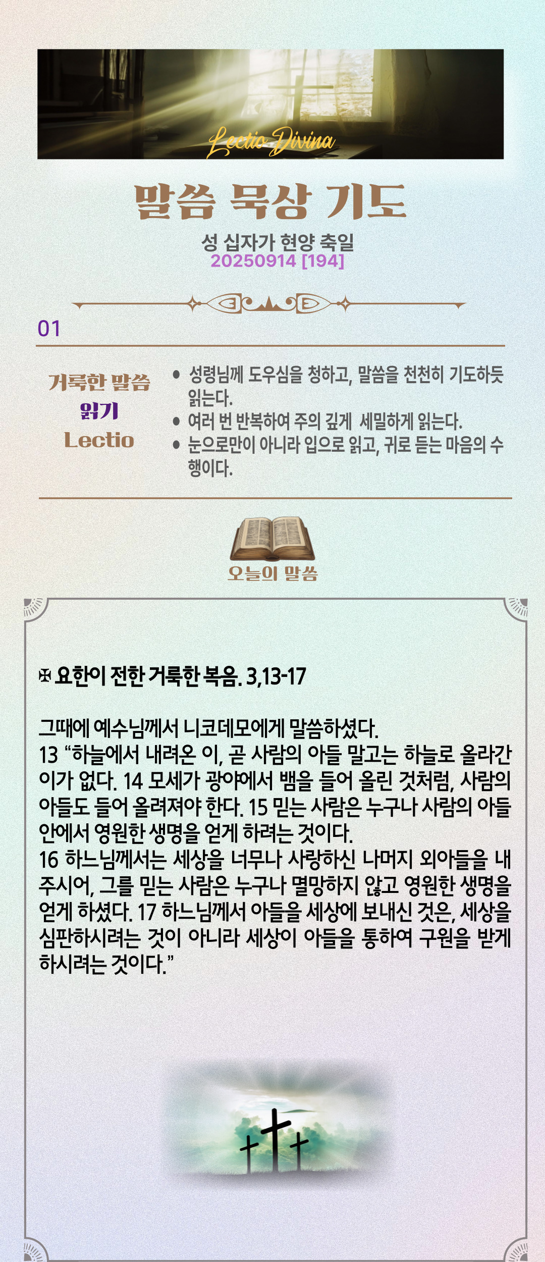 말씀묵상기도 LECTIO DIVINA [194] 20250914 성 십자가 현양 축일
