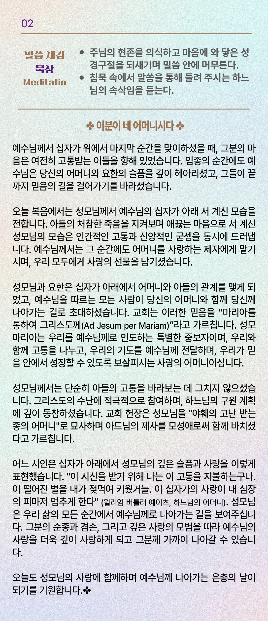 말씀묵상기도 LECTIO DIVINA [195]20250915 고통의 성모 마리아 기념일