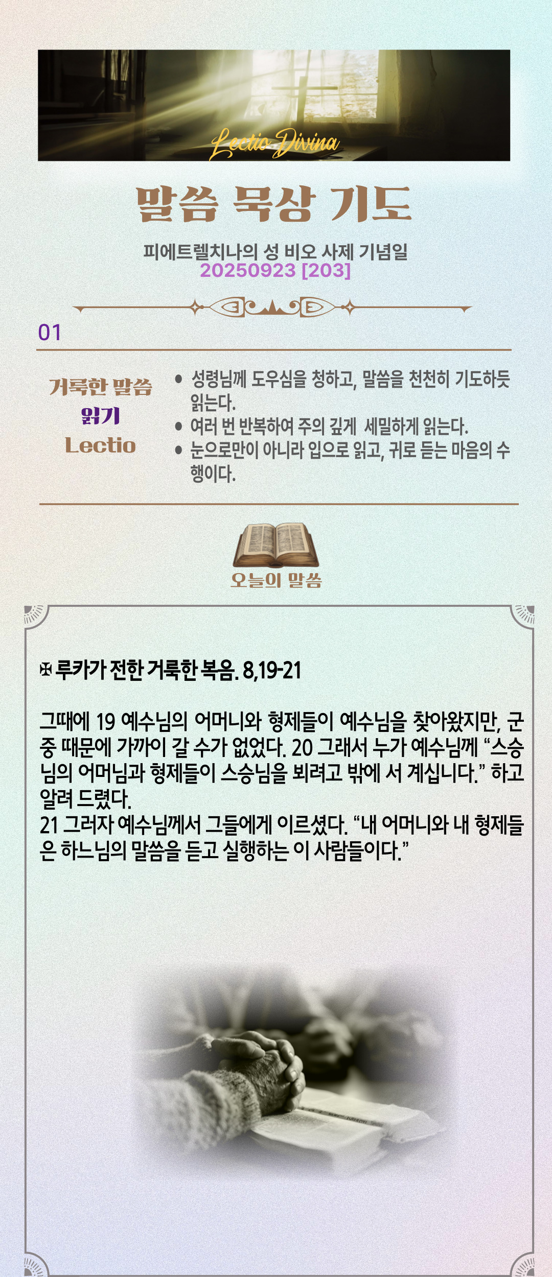 말씀묵상기도 LECTIO DIVINA [203] 20250923 피에트렐치나의 성 비오 사제 기념일