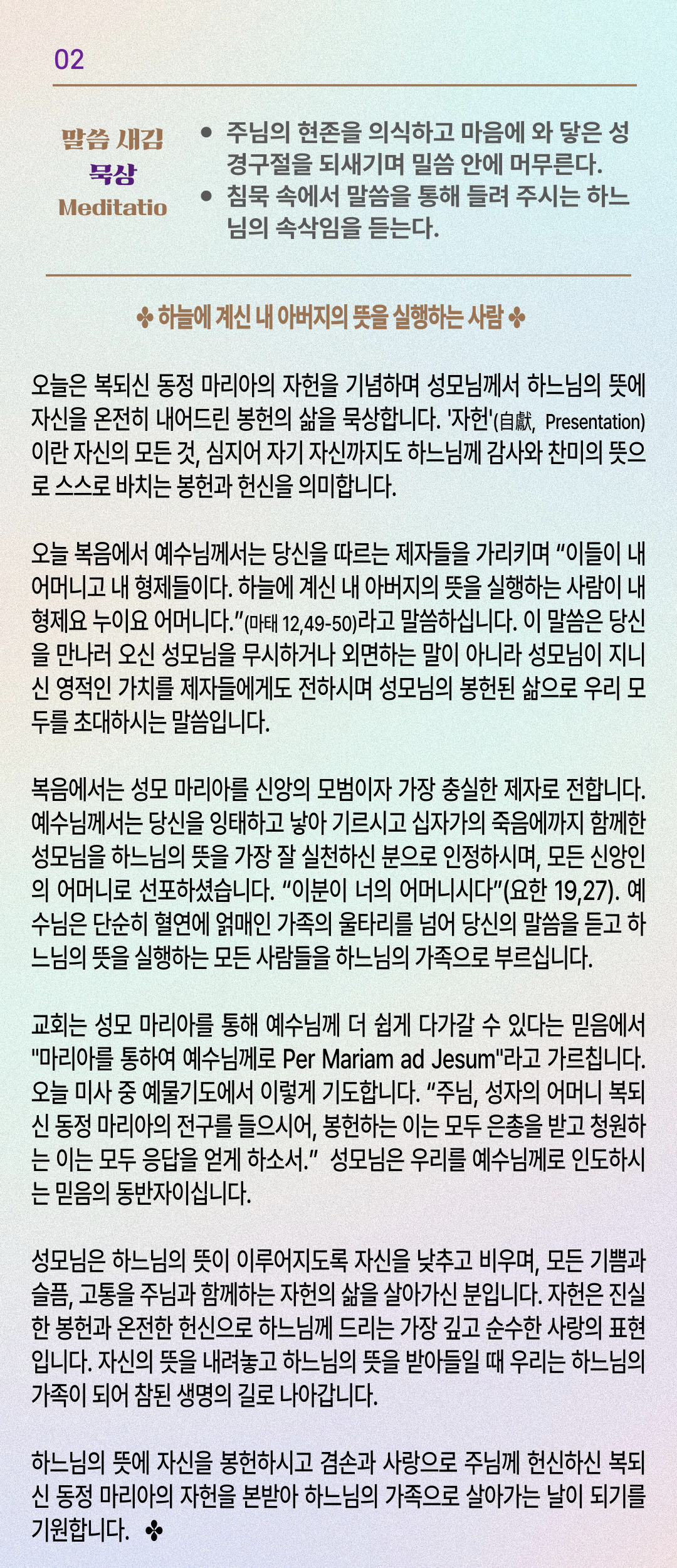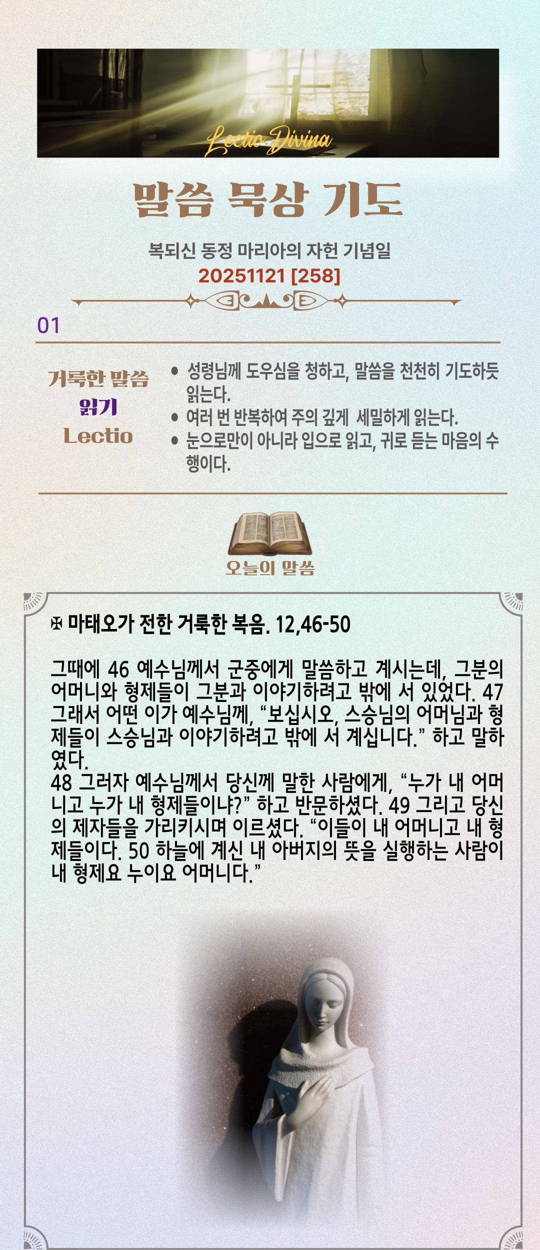 말씀묵상기도 LECTIO DIVINA [258] 20251121 복되신 동정 마리아 자헌 기념일