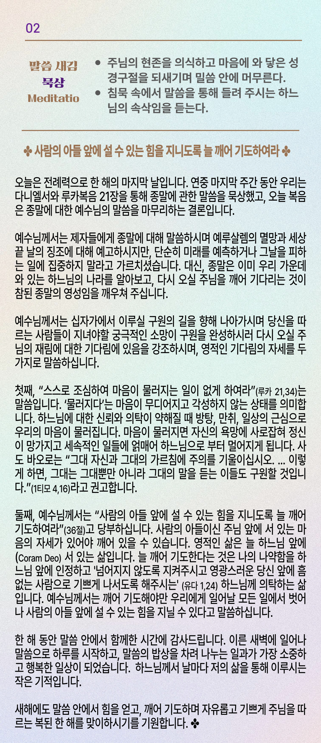 말씀묵상기도 LECTIO DIVINA [266] 20251129 연중 제34주간 토요일