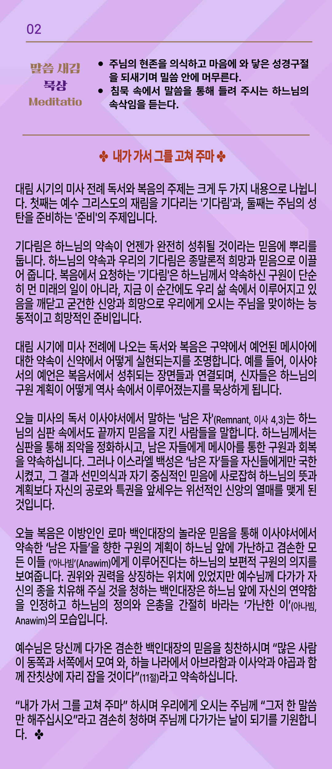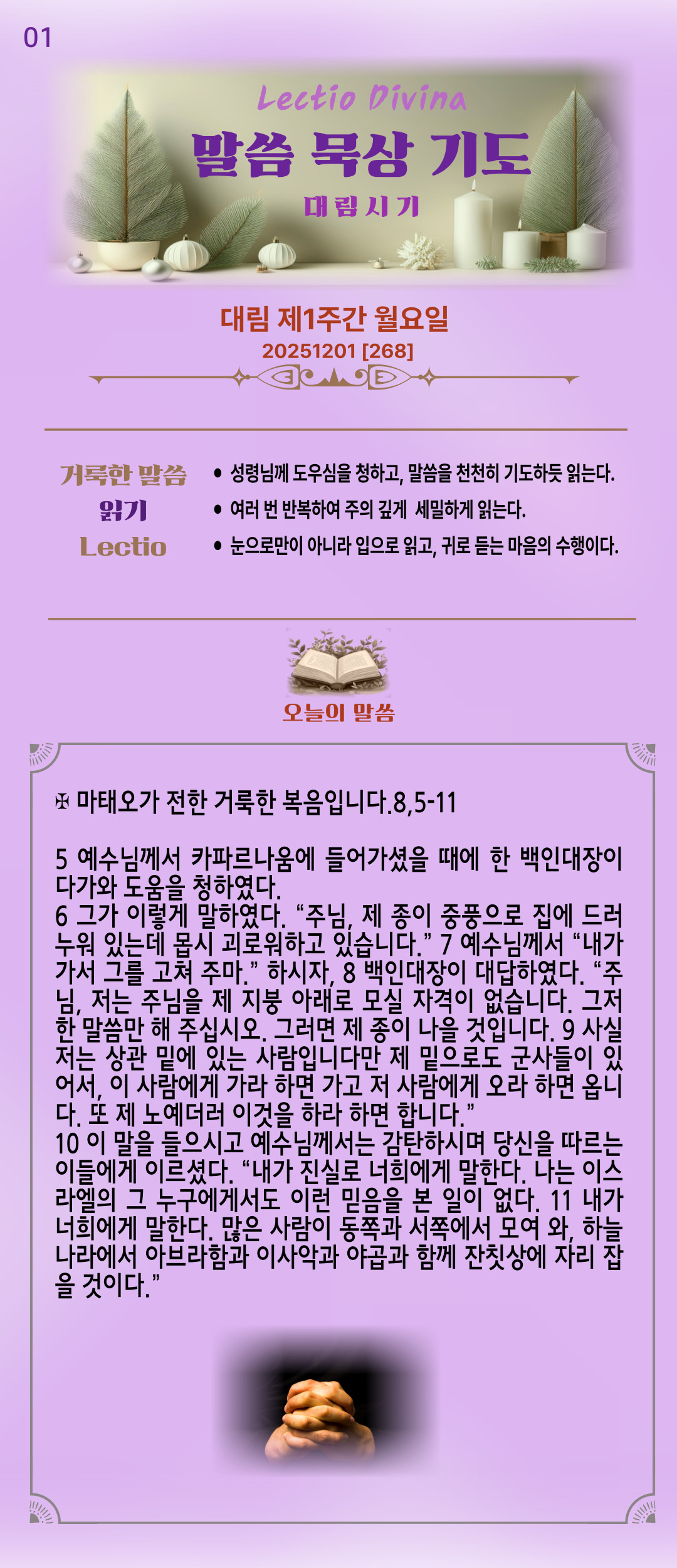 말씀묵상기도 LECTIO DIVINA [268] 20251201 대림 제1주간 월요일