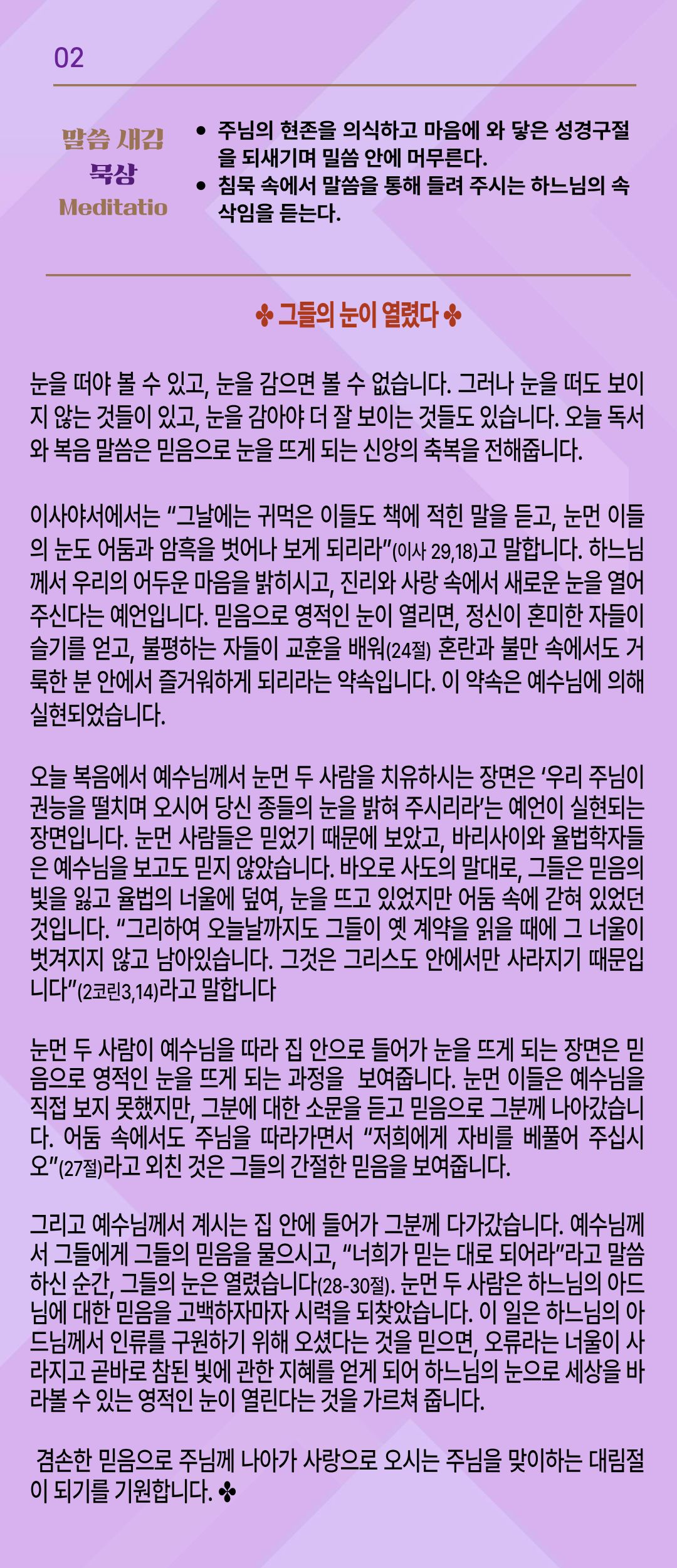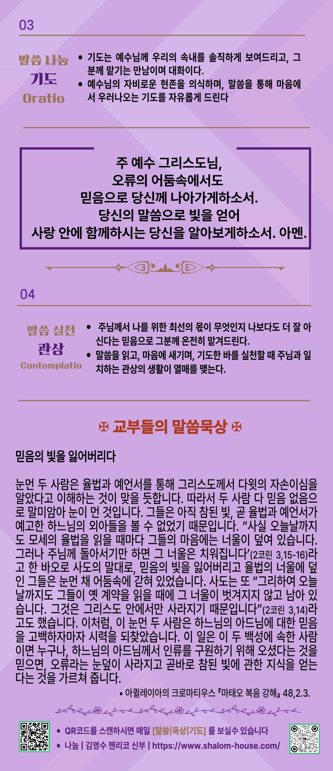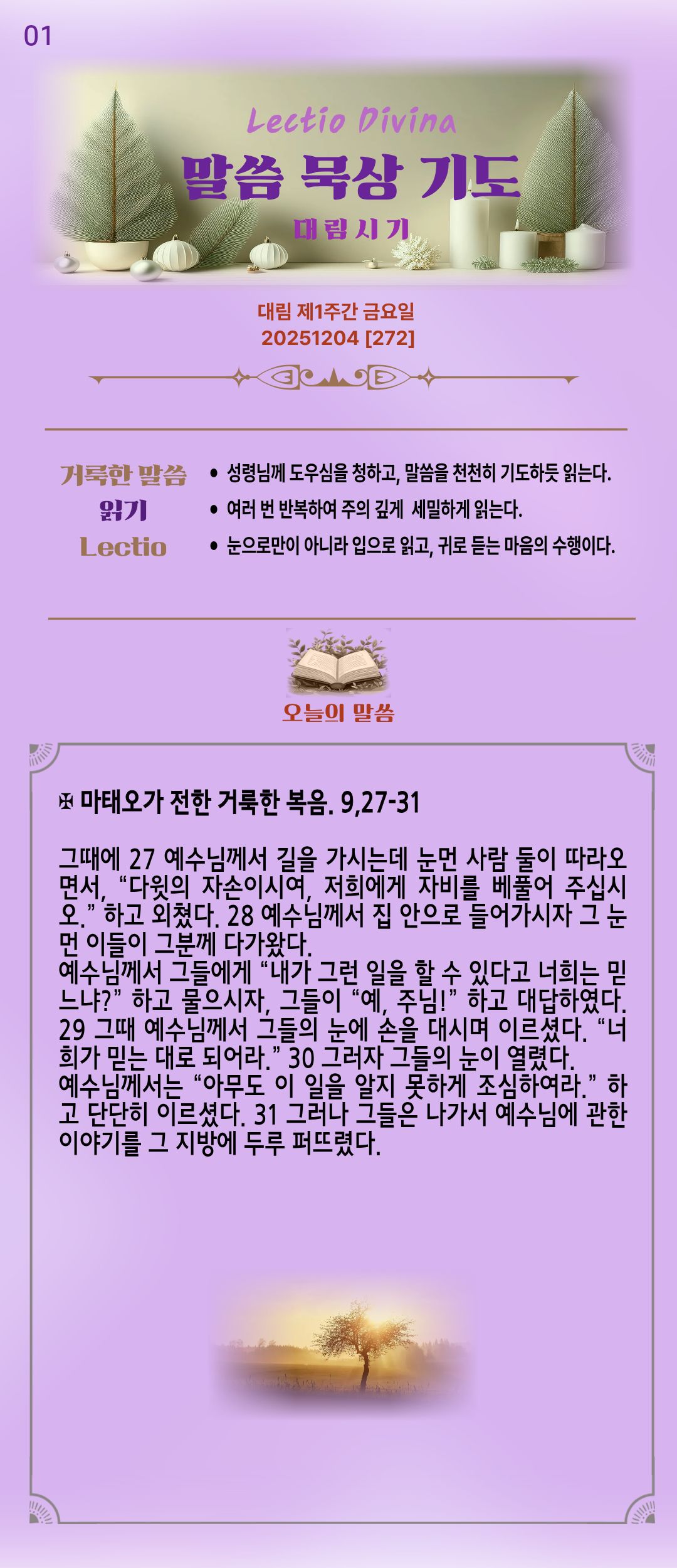 말씀묵상기도 LECTIO DIVINA [272] 20251205 대림 제1주간 금요일